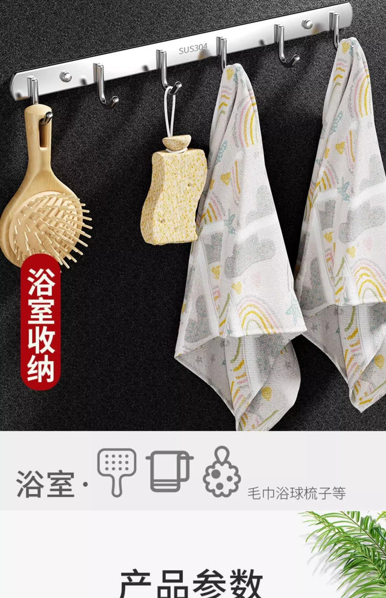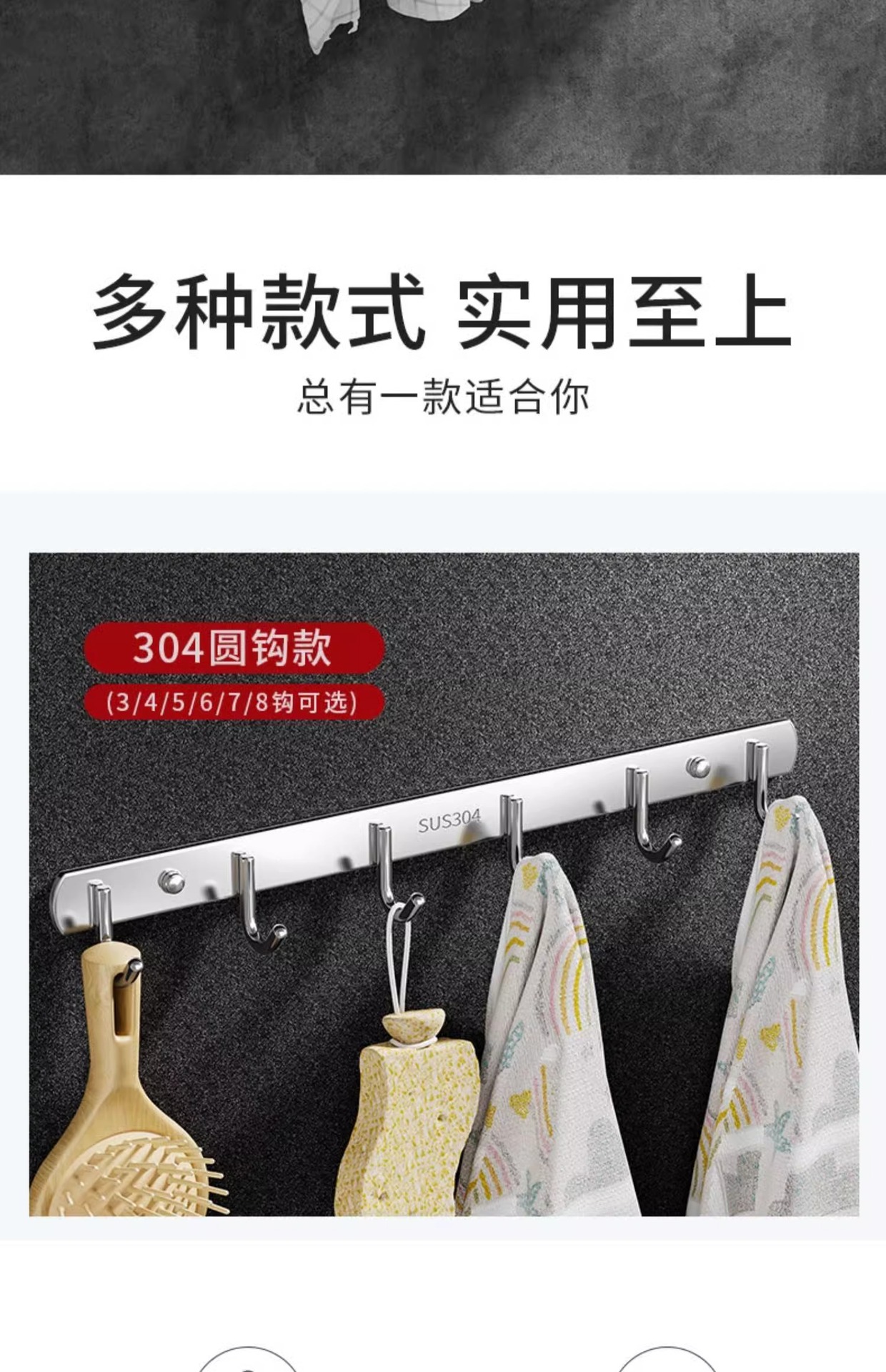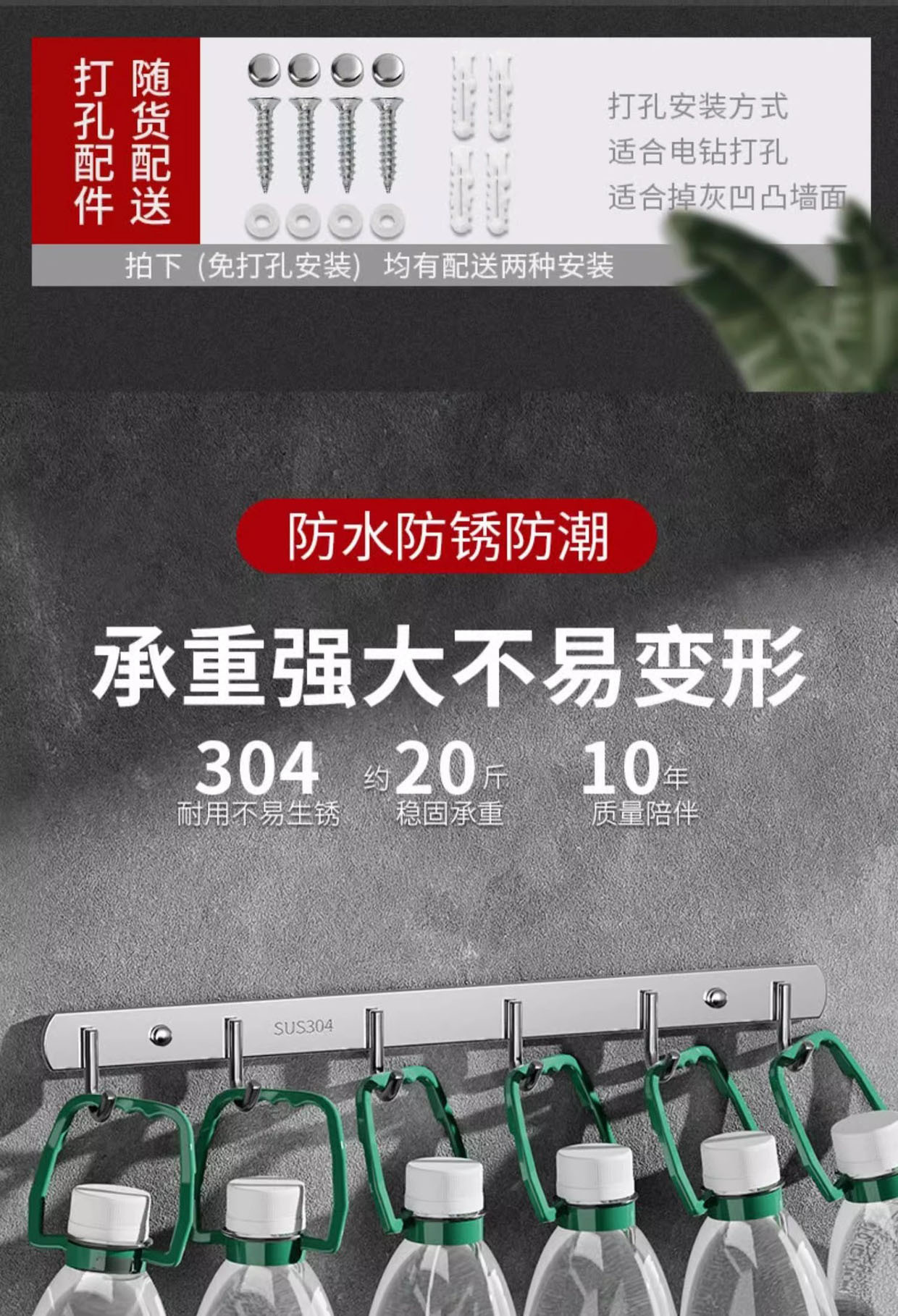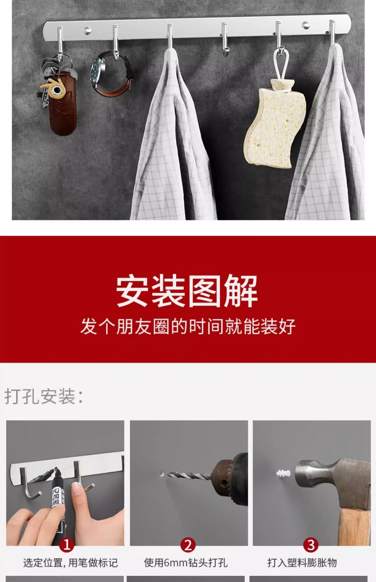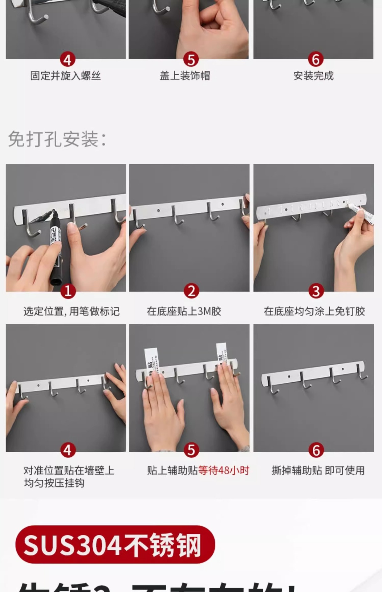 6 hooks-2 pieces (free expansion screws + nail-free glue)