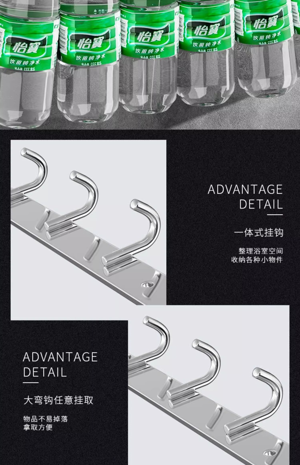 3 hooks-2 pieces (free expansion screws + nail-free glue)