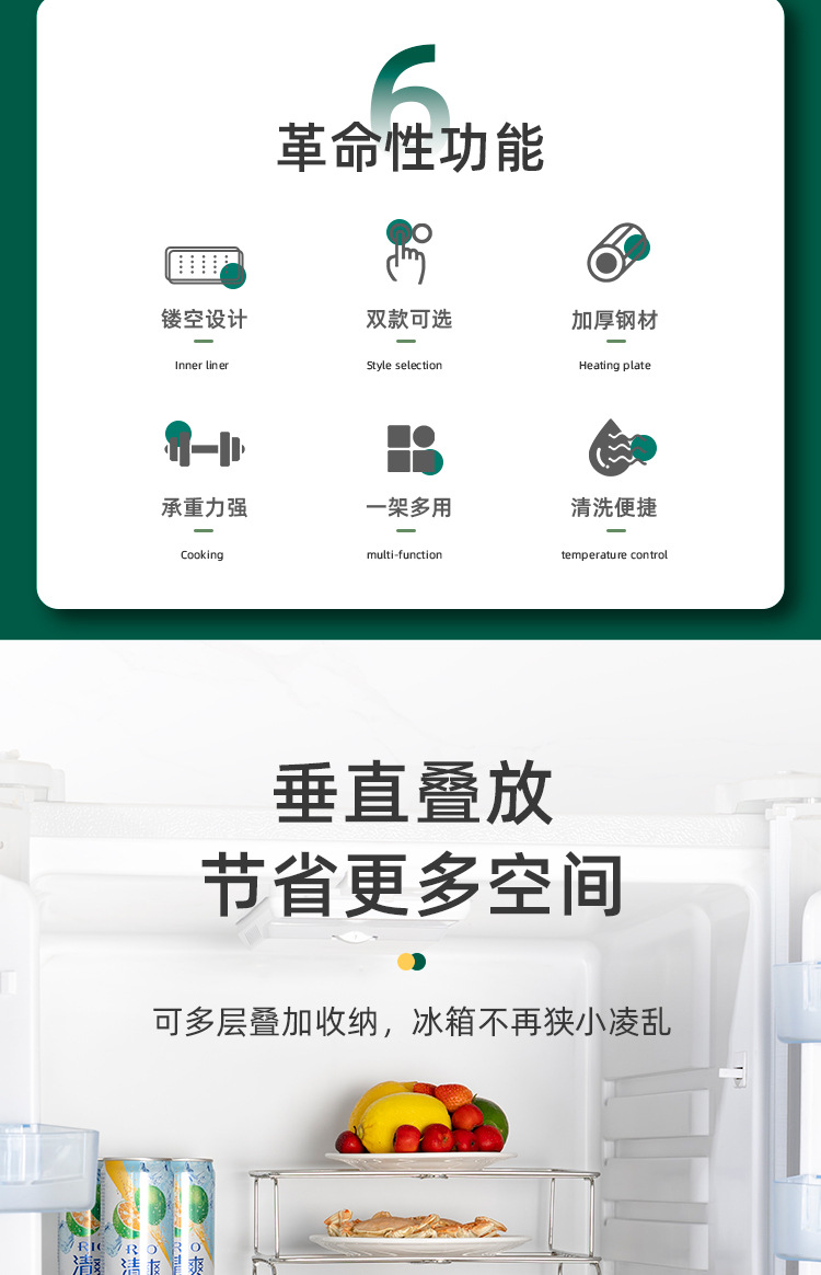 refrigerator layered rack large double layer 30x19.5x8.5
