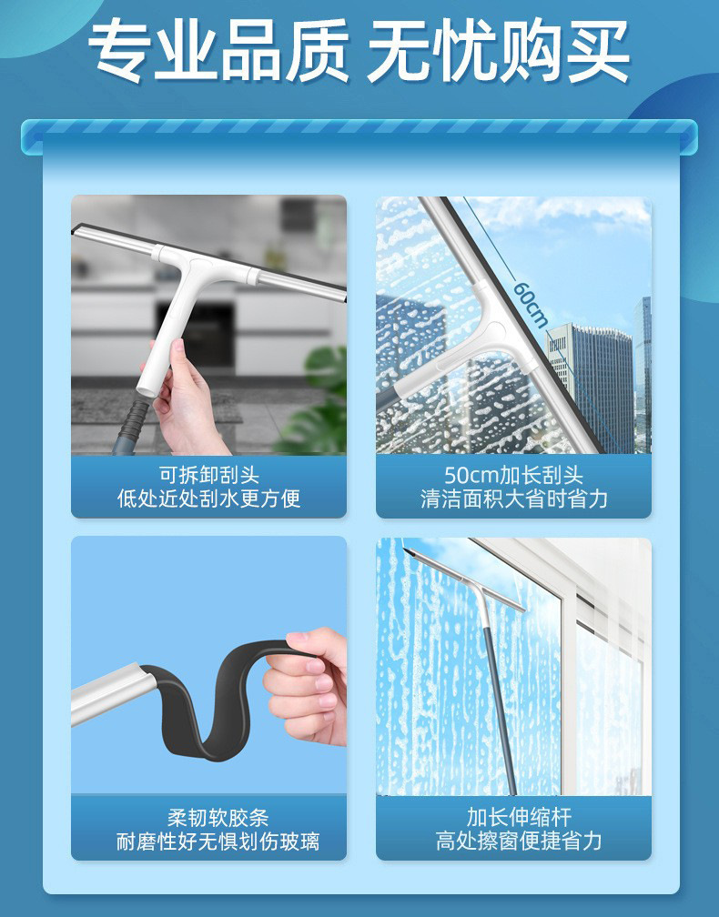50cm scraper +1.2 m reinforced telescopic rod (high quality soft scraping strip)