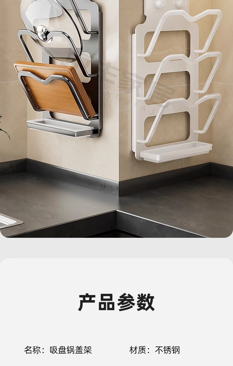 milky white invisible sucker pot cover rack-three layers