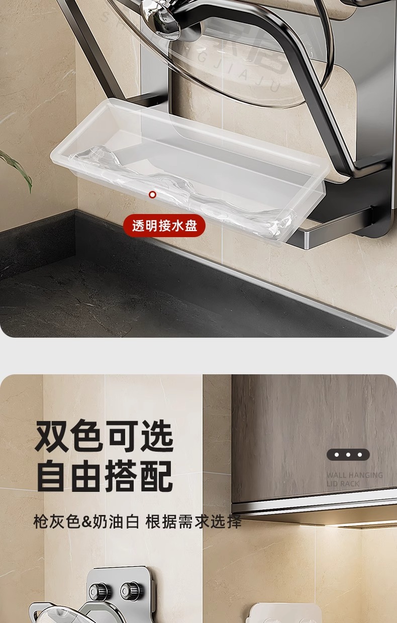 gray invisible suction cup lid rack-double layer