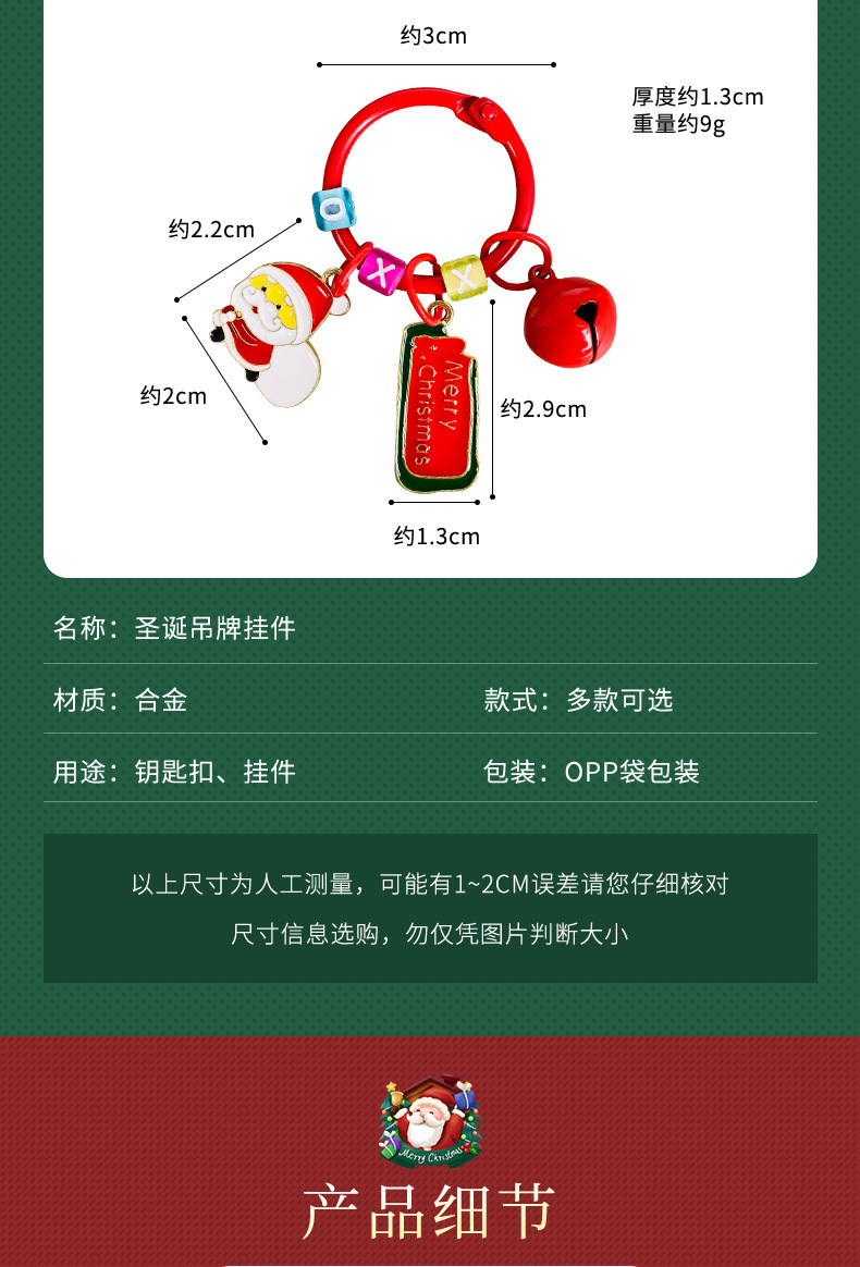 christmas tag pendant-red green merry christmas + santa claus + suspension box