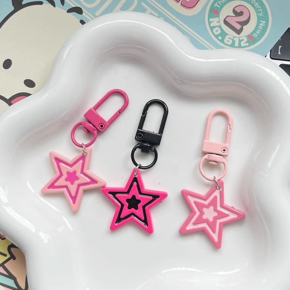 barbie five-pointed star keychain-deep pink
