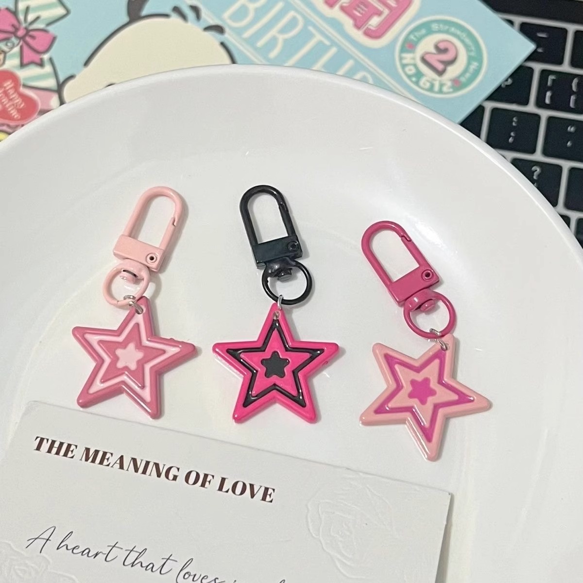 barbie five-pointed star keychain-black pink