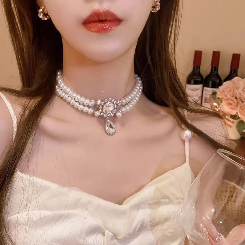 double-layer twin pearl necklace