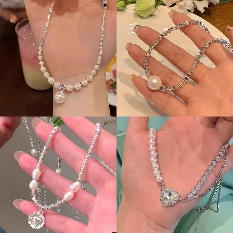 gradient pearl zircon clavicle chain necklace