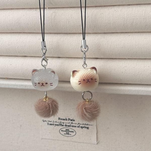 plush white cat pendant