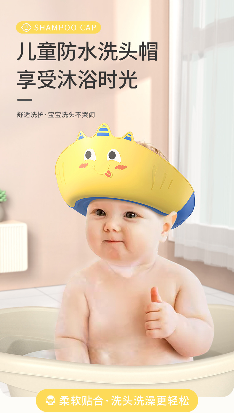 little dinosaur shower cap-yellow + shampoo brush + head washing cup