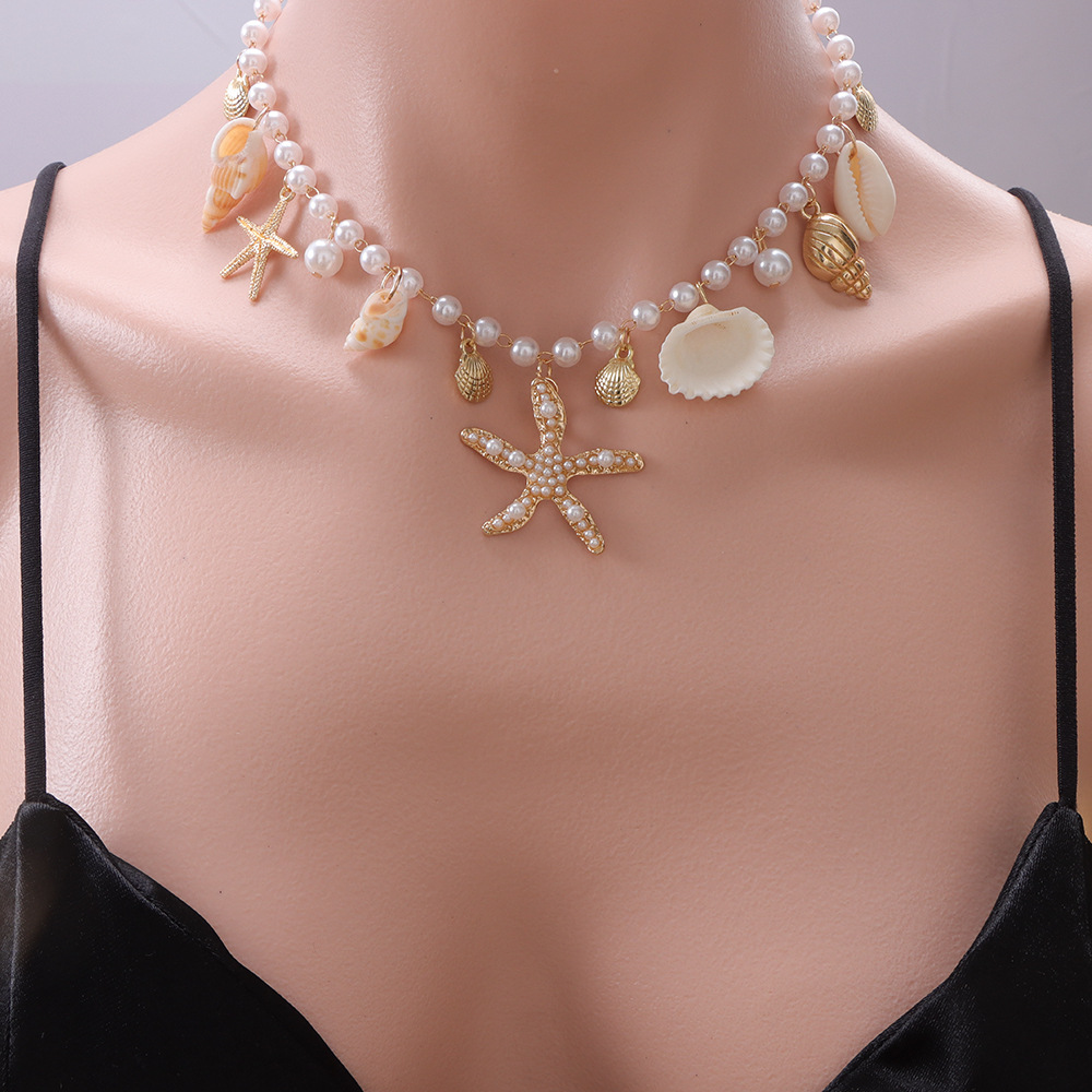 pearl starfish conch necklace