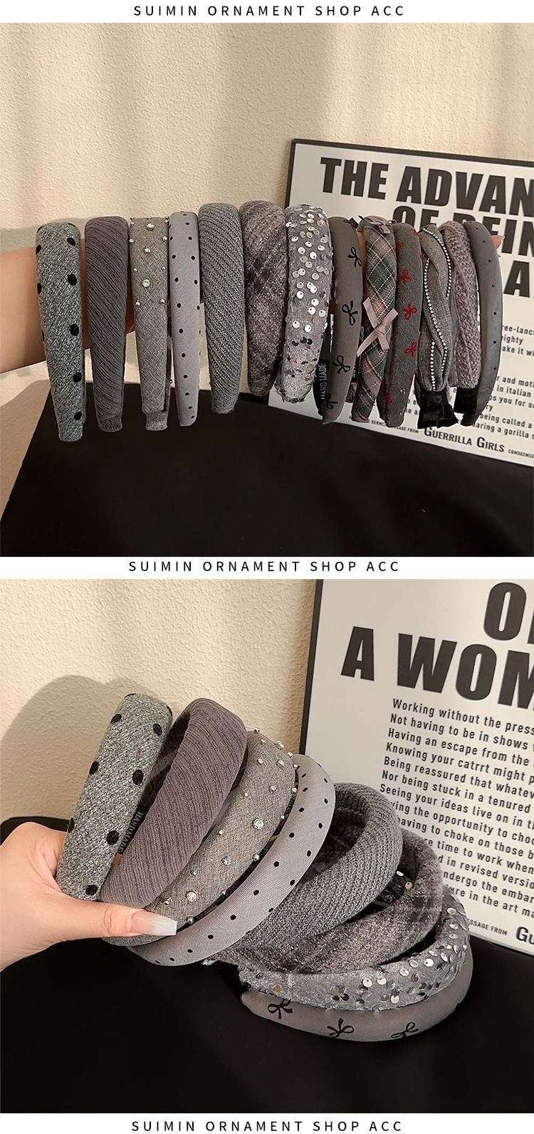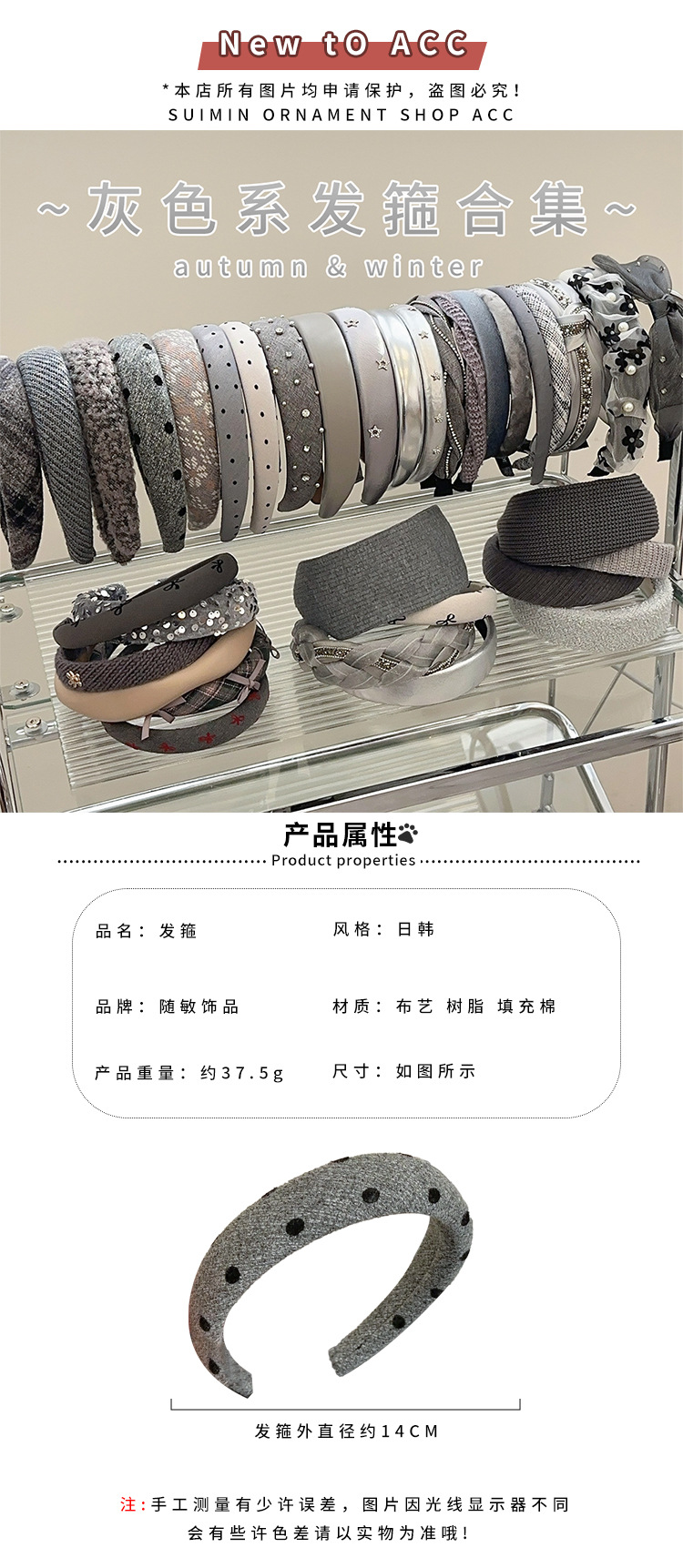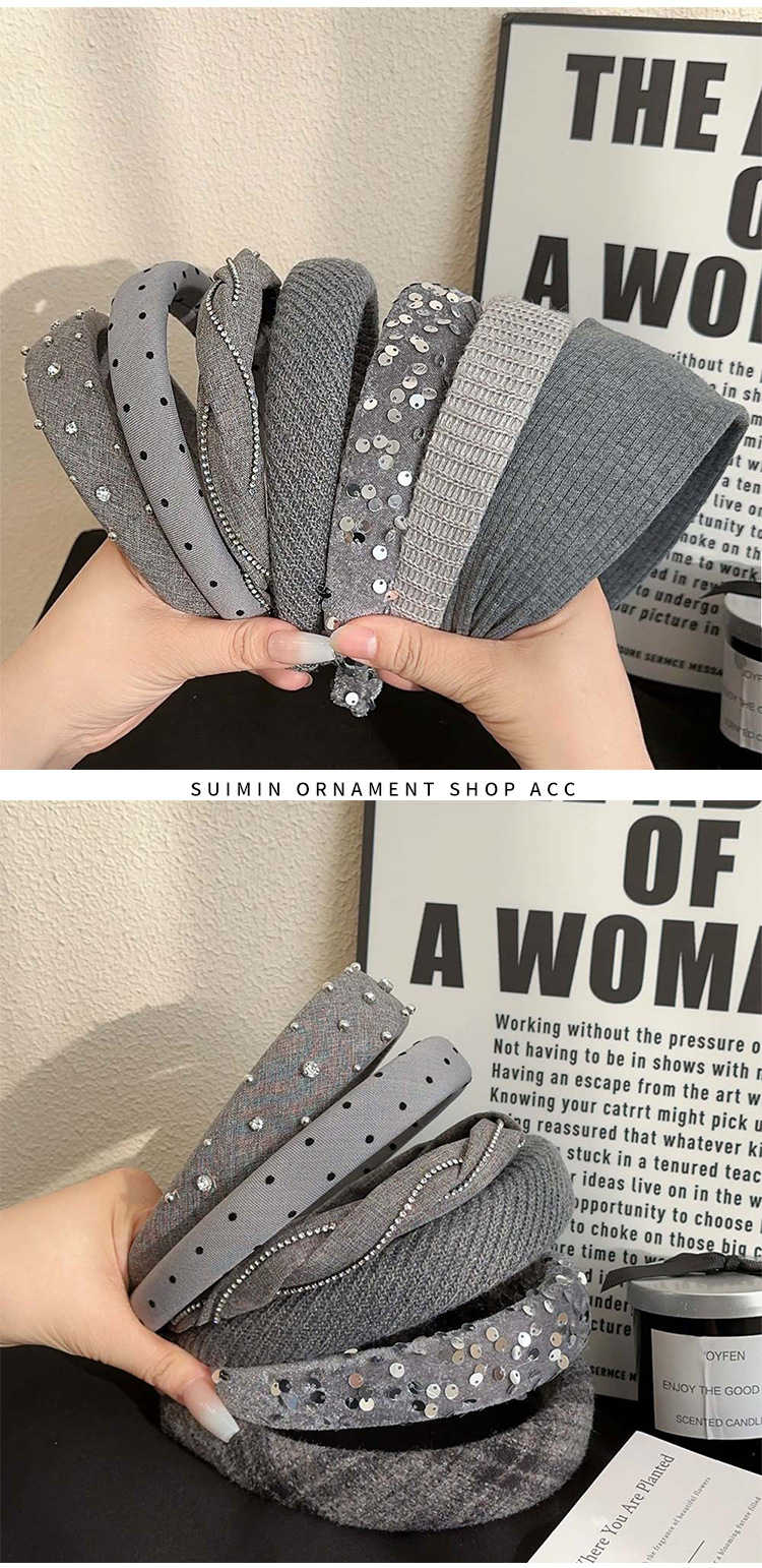 dark gray fluffy hair band silver standard
