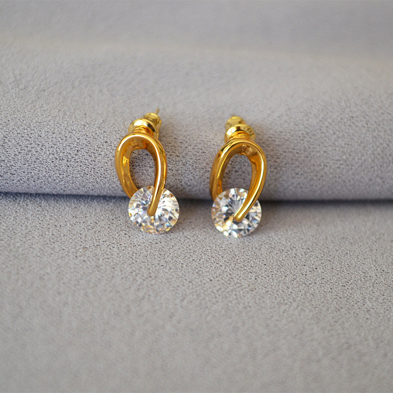 Approximately 1.5 cm in size, brass plated with gold, zircon, 925 silver pin.