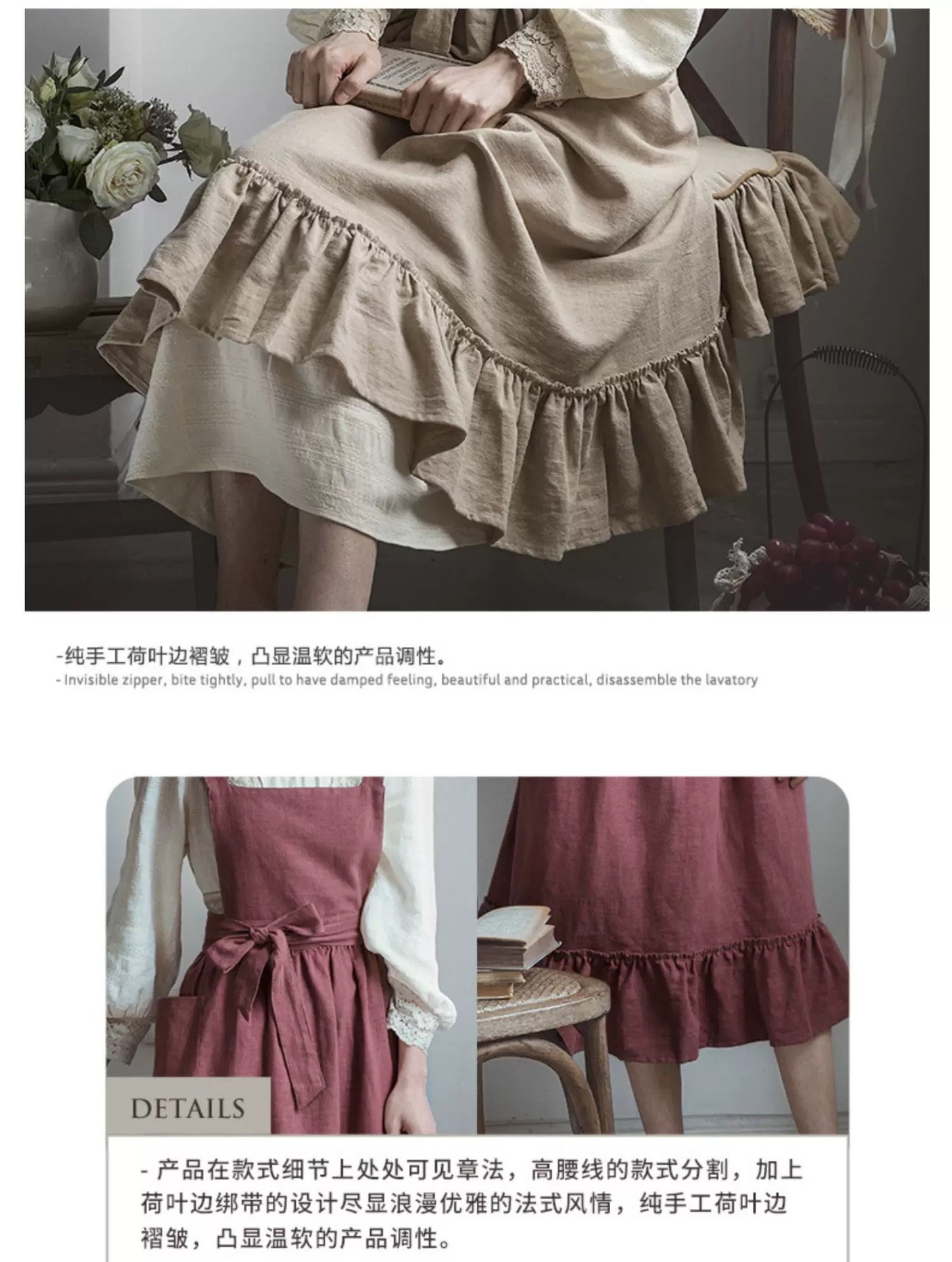 beige ruffled-pure cotton 200gsm