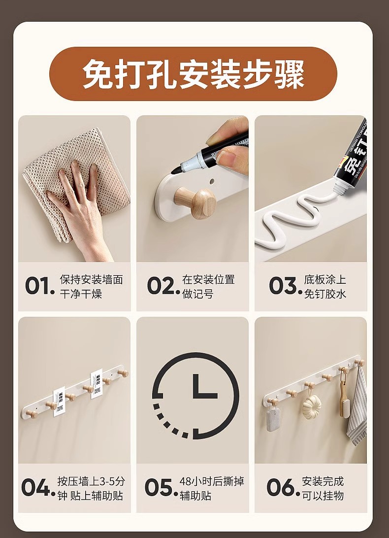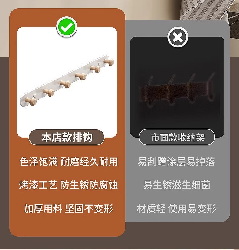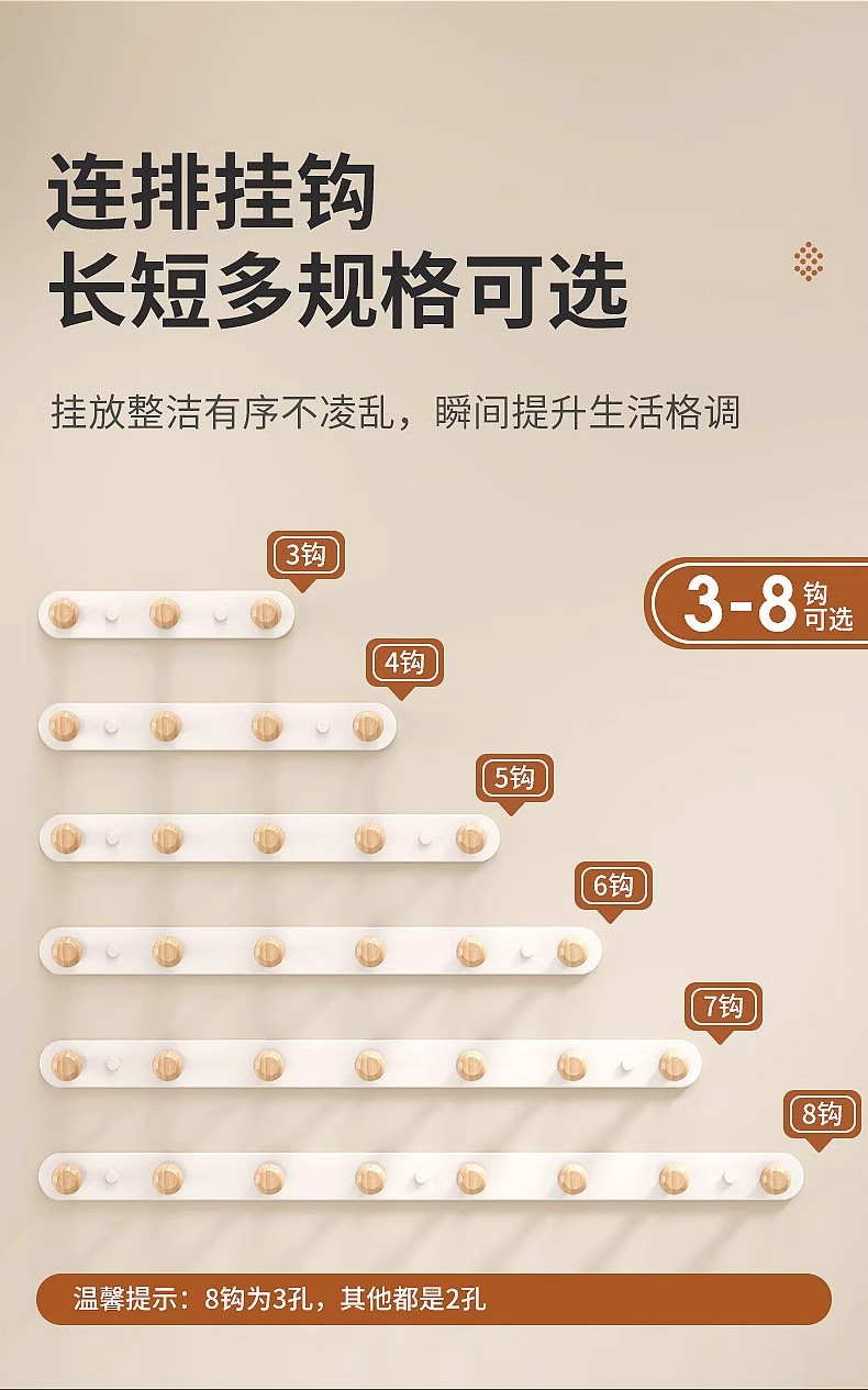 [milk white]-log row hook 6 hooks-thickening