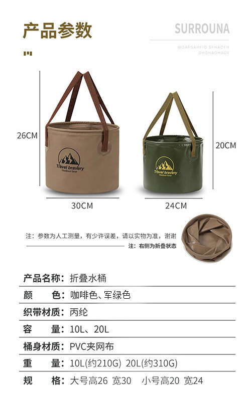 20l army green collapsible bucket