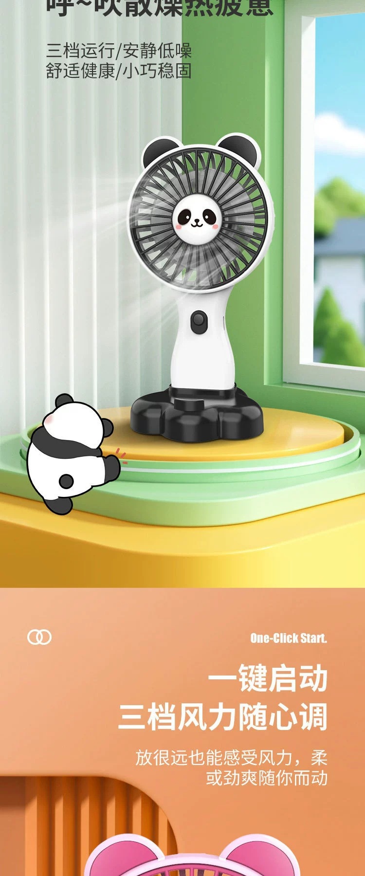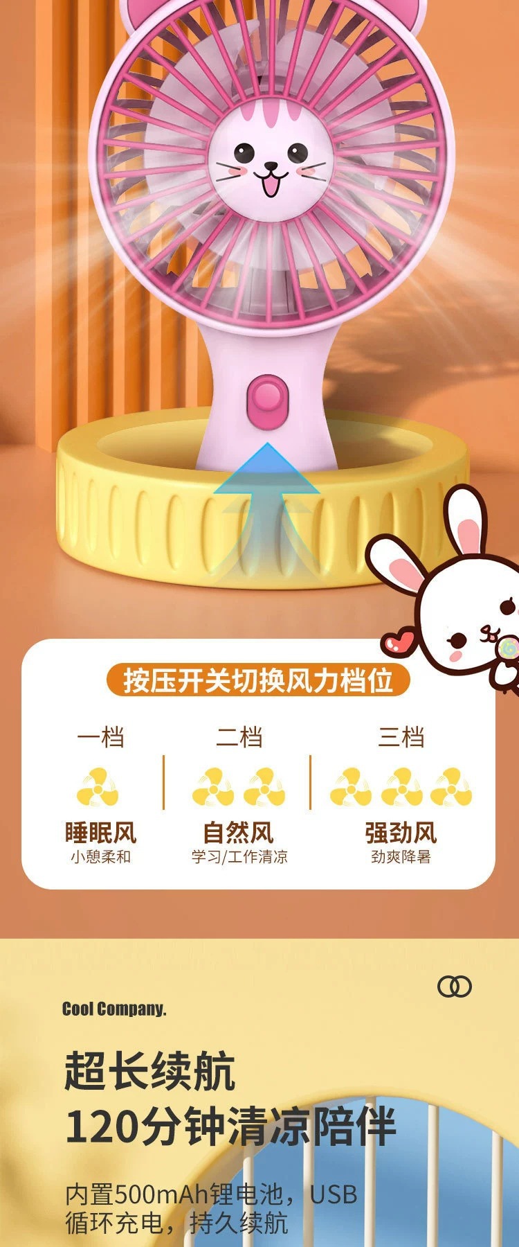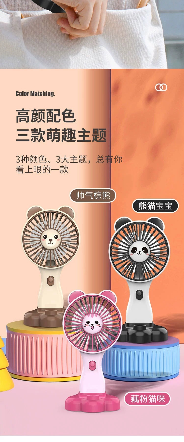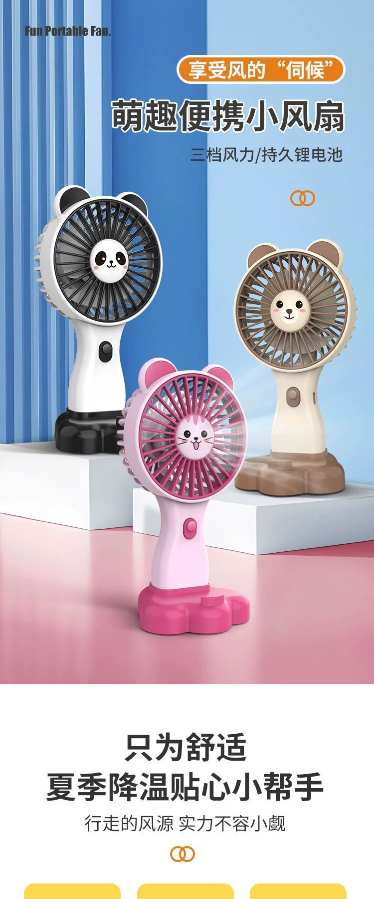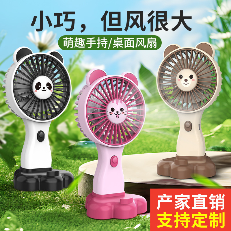 summer new long endurance 500mah lithium battery three-gear wind power mini fan cute cartoon little fan