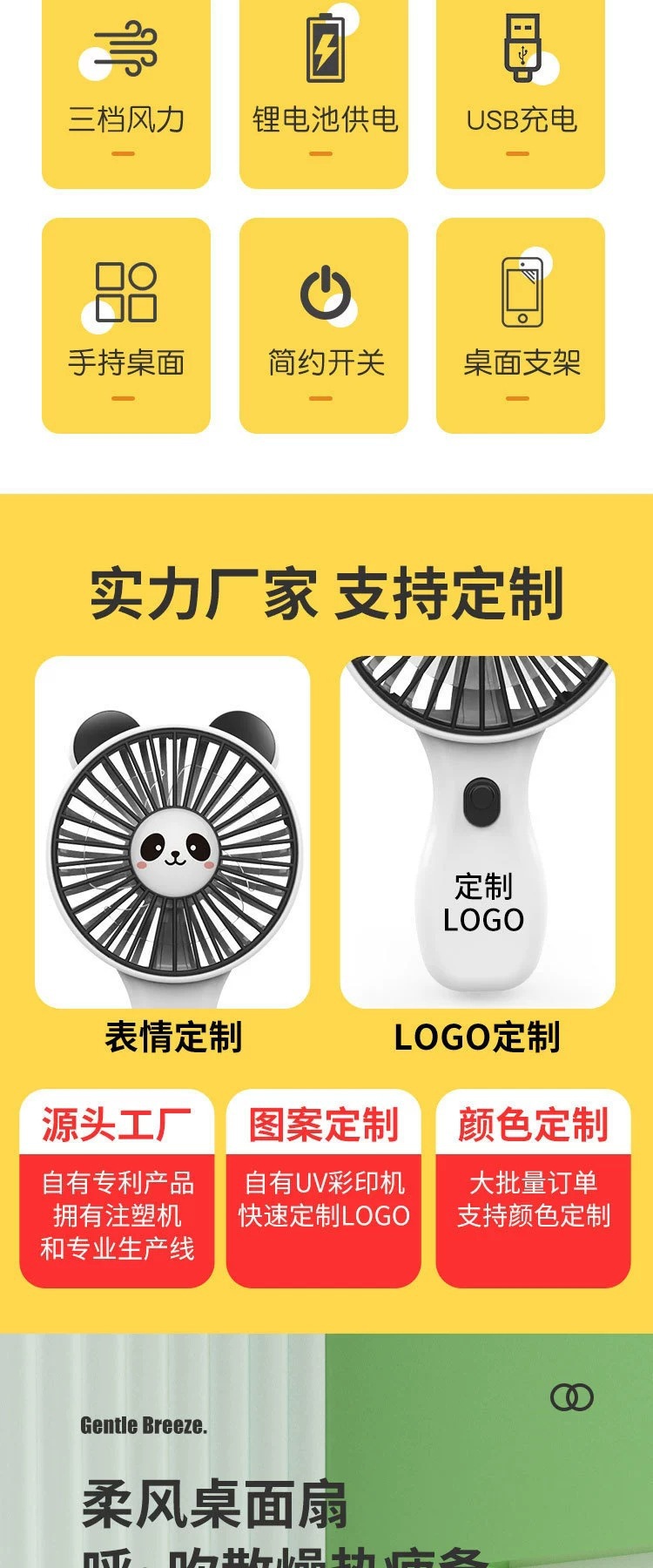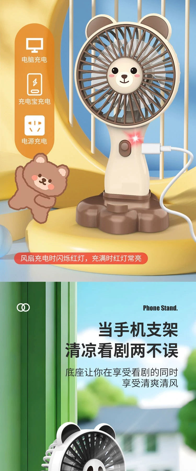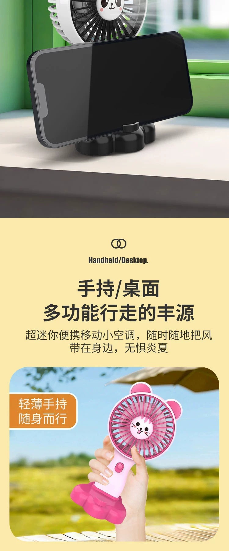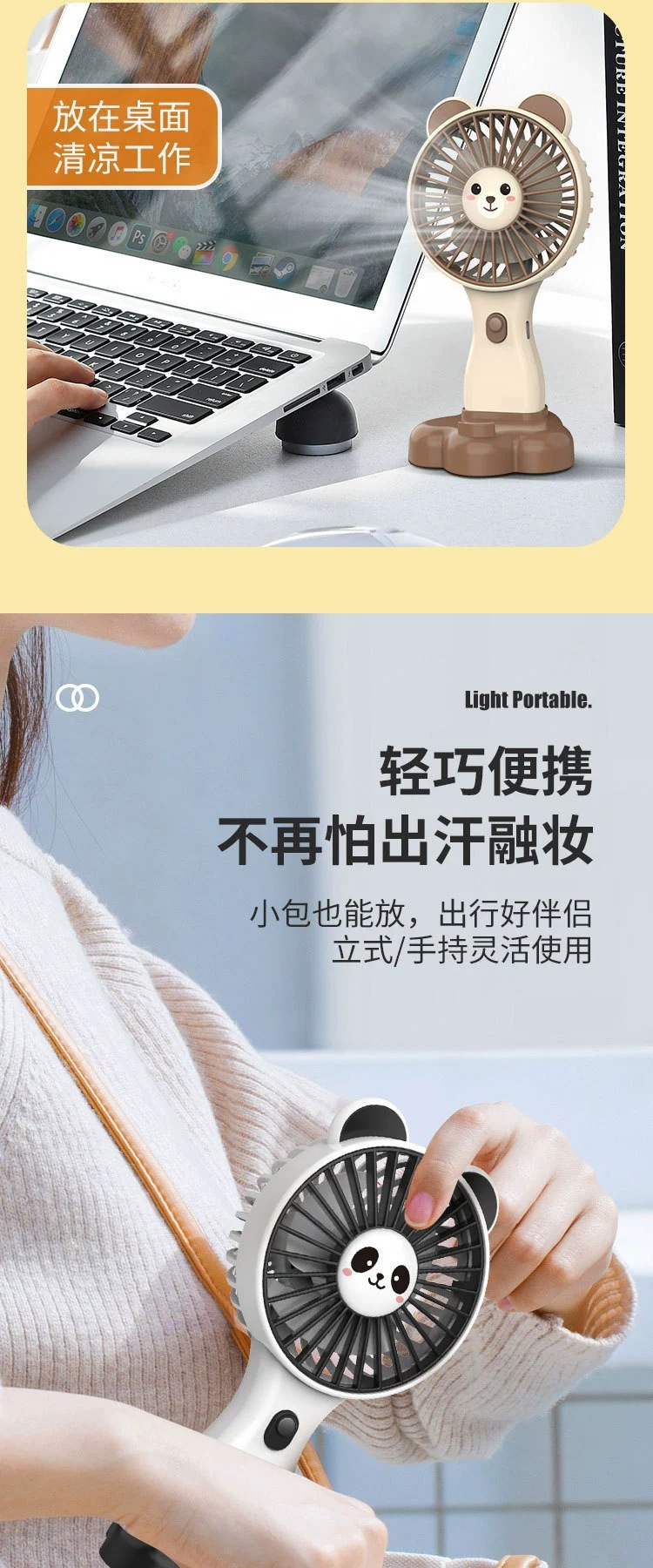 summer new long endurance 500mah lithium battery three-gear wind power mini fan cute cartoon little fan