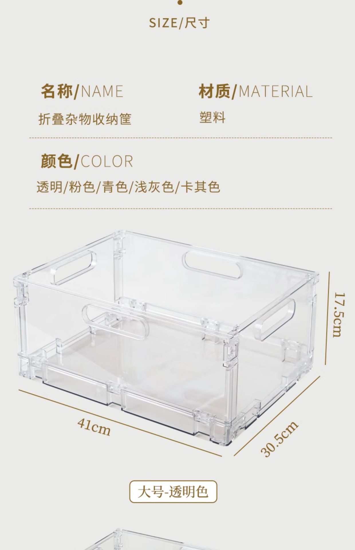 foldable storage basket-transparent (large) length 41 * width 30 * height 17
