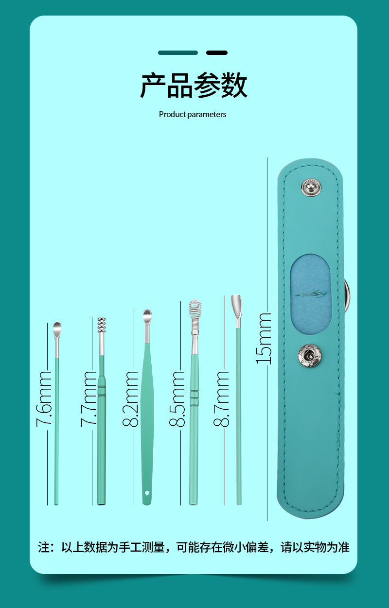 mint green new leather bag-ear cleaning 6-piece set