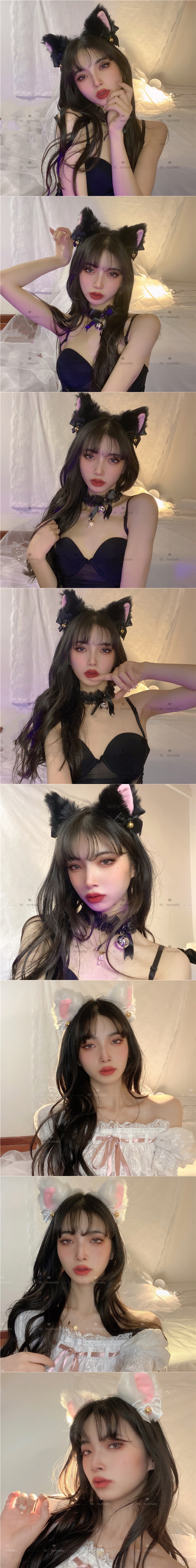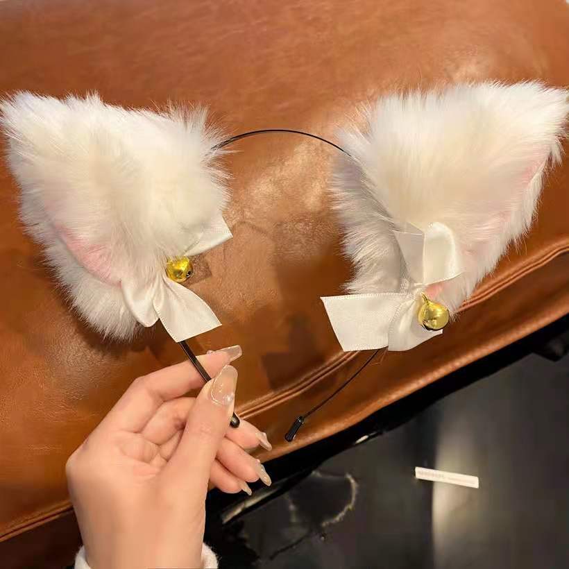 white bell plush cat headband