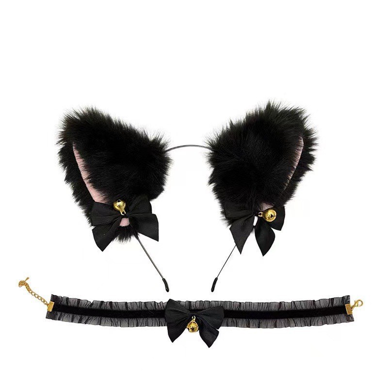 black bell headband + lace collar two-piece set