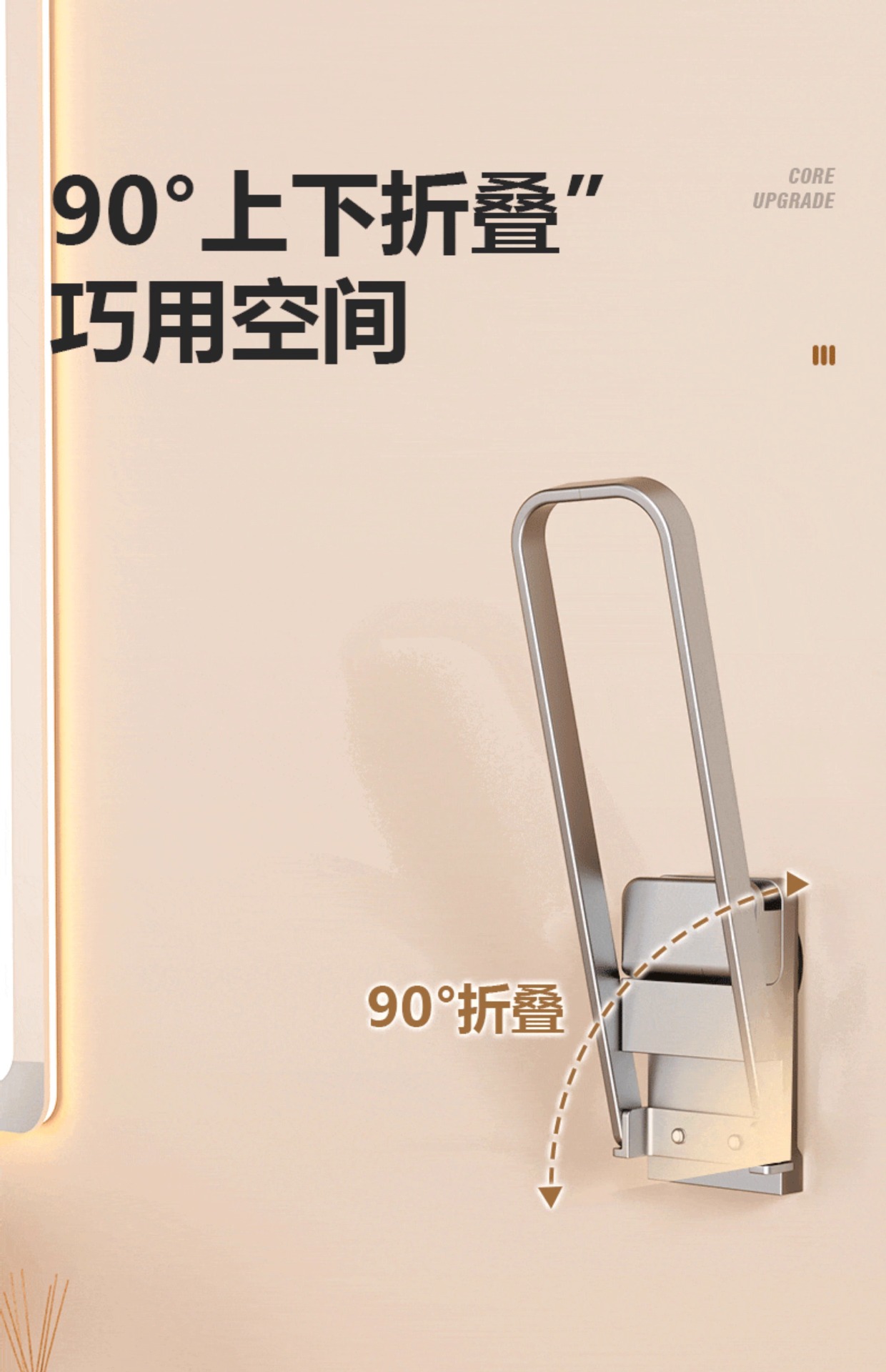 [elegant white single] suction cup folded up and down clothes rack