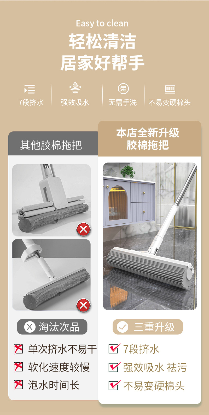| folding bucket + 33cm mop package (2 cotton head) | CN¥ 48.95 | 19991 piece available |