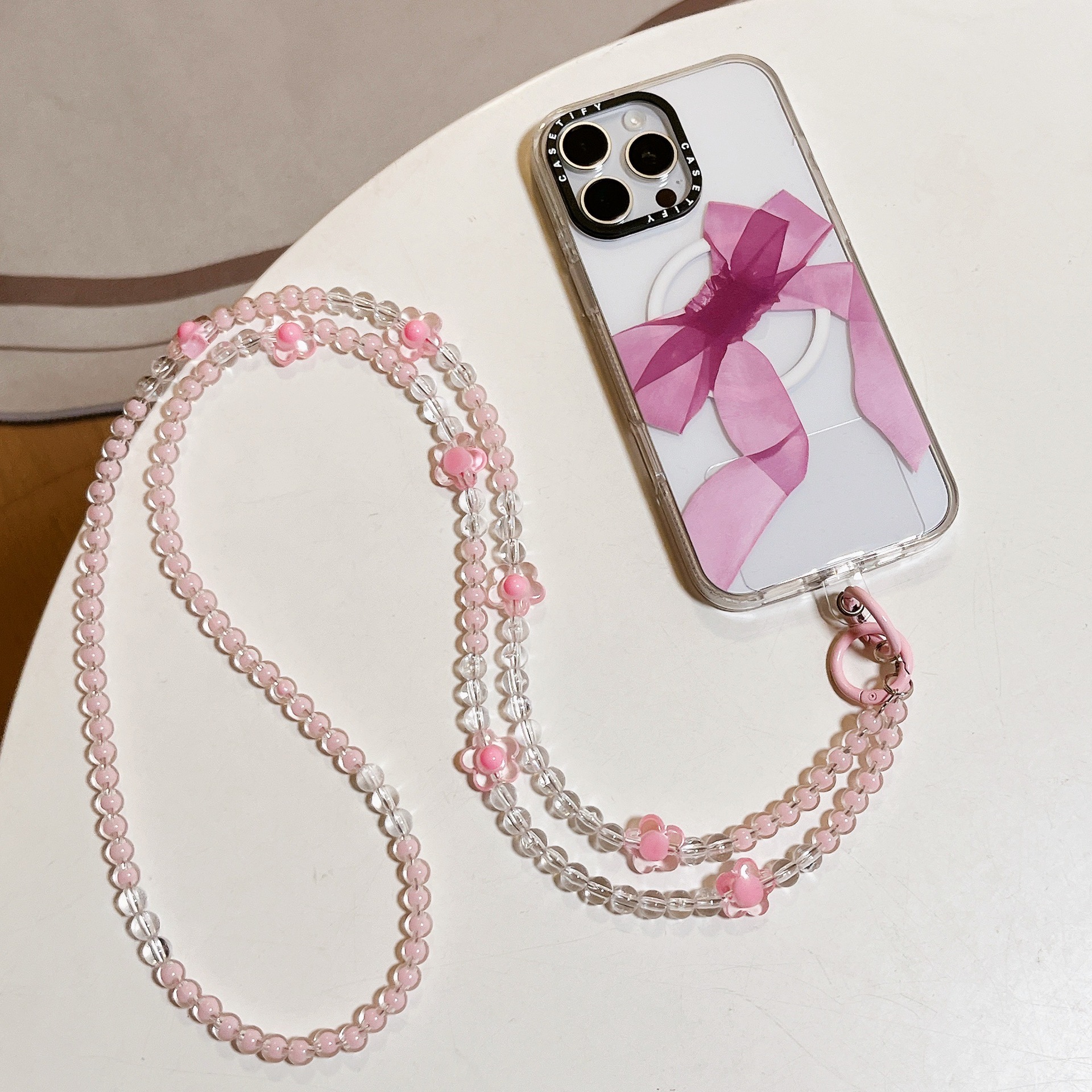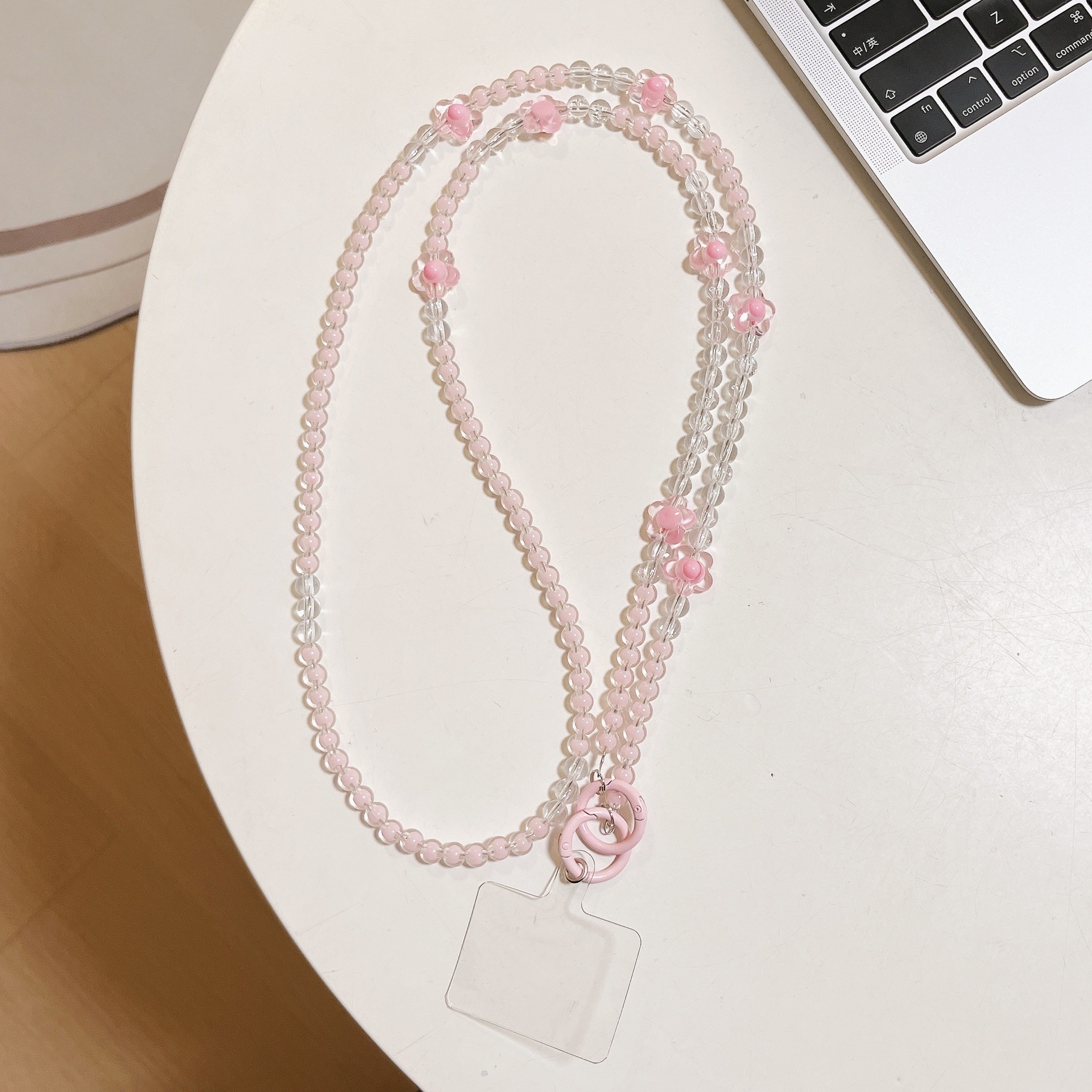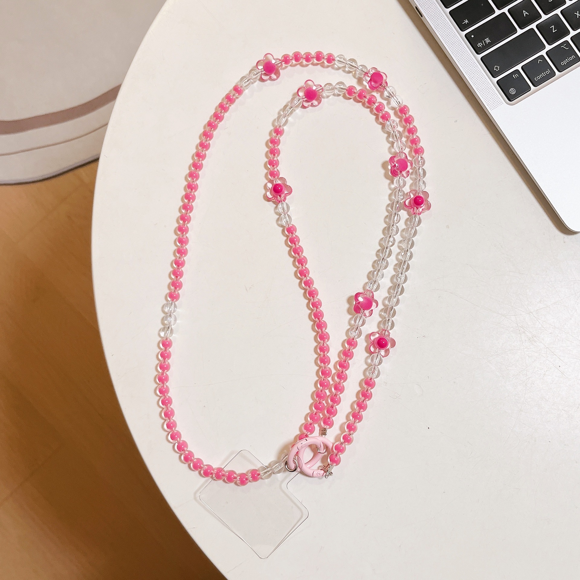 k1038 bracelet pink beads +8 four-leaf clover