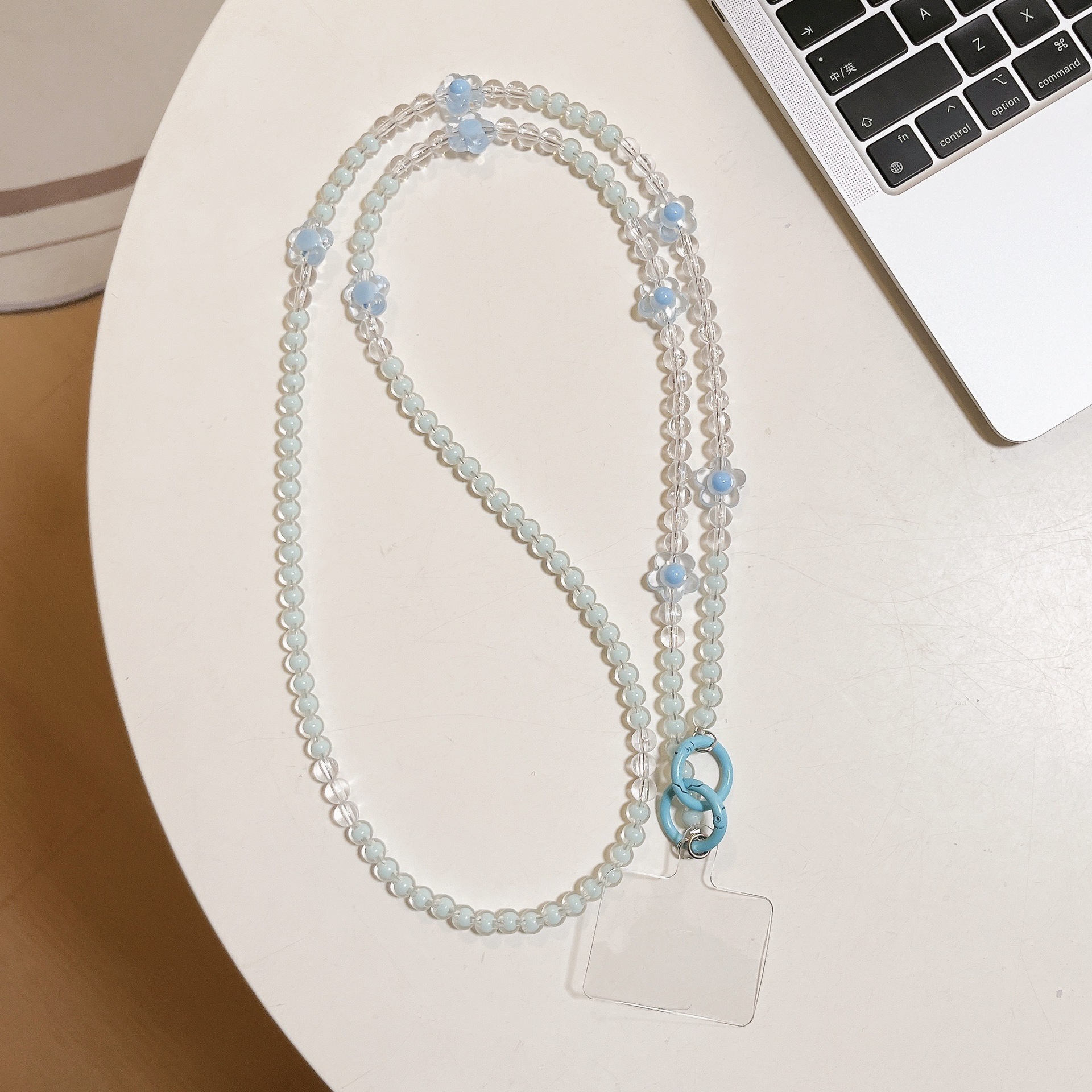 k1033 bracelet transparent blue beads +8 four-leaf clover