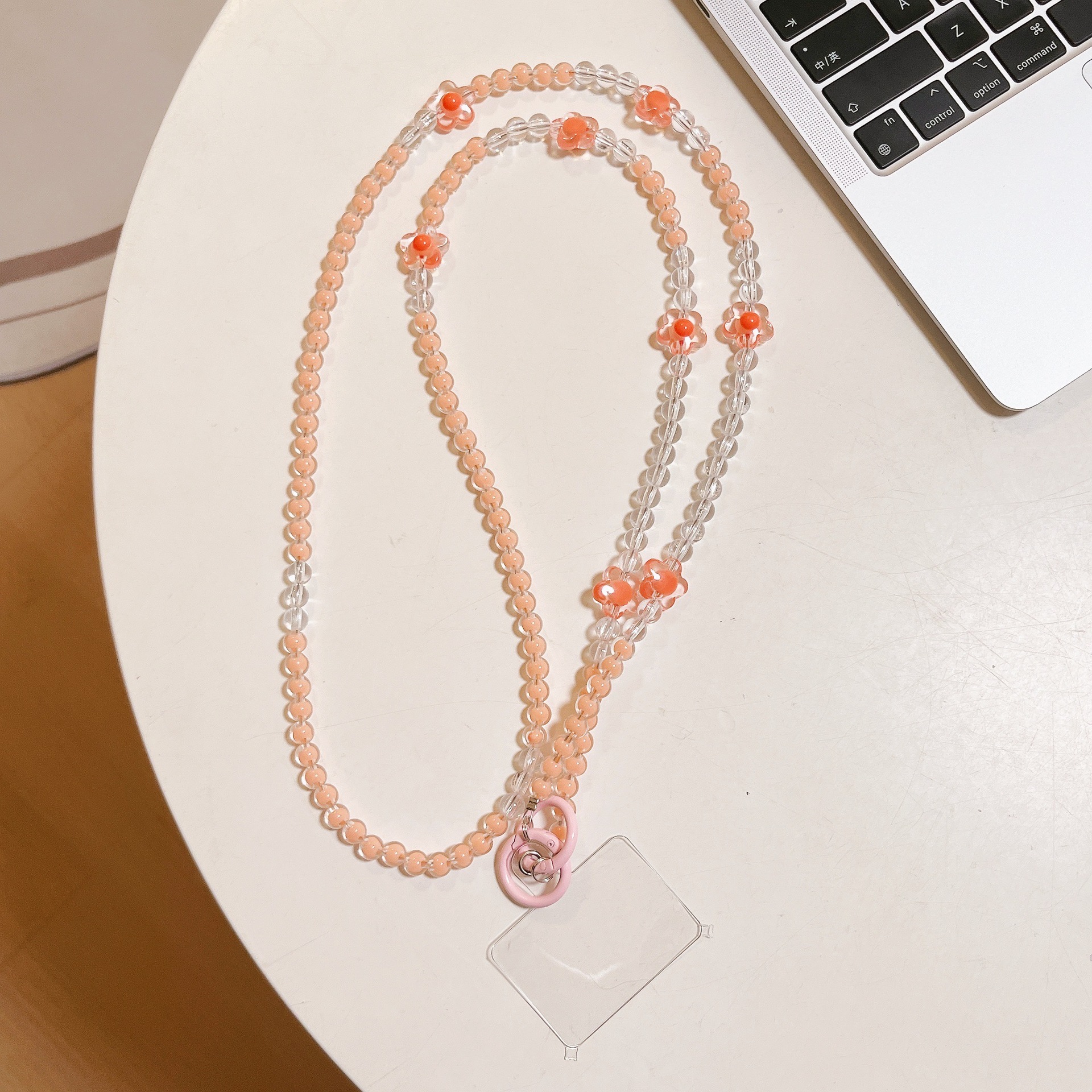k1032 bracelet transparent peach red beads +8 four-leaf clover
