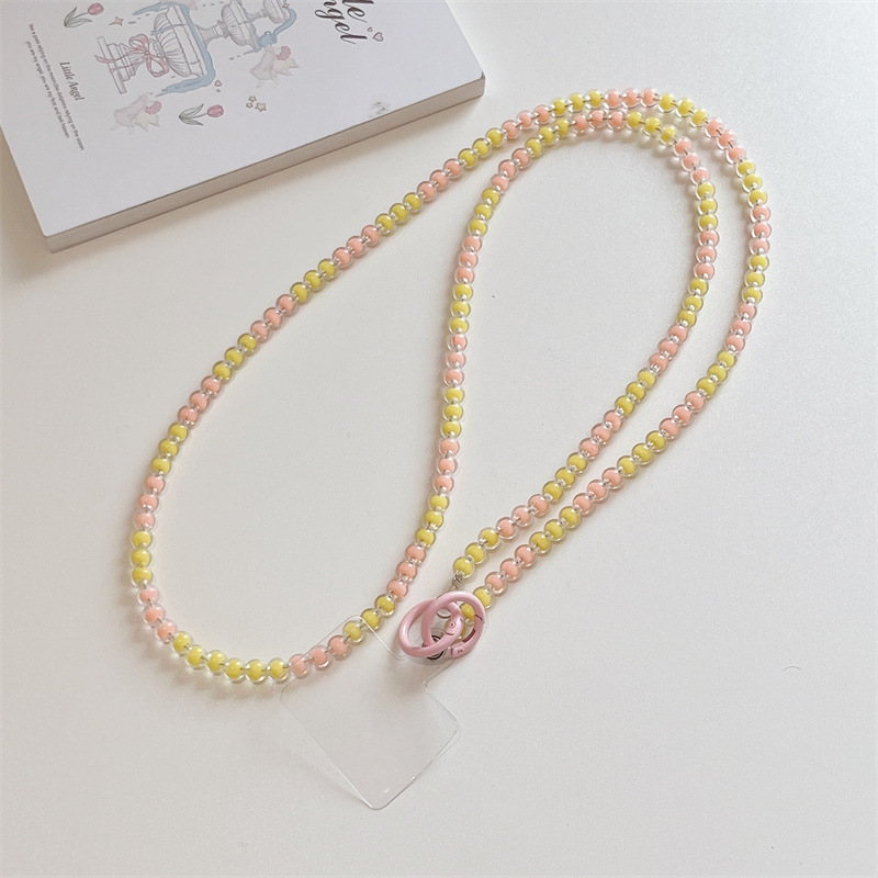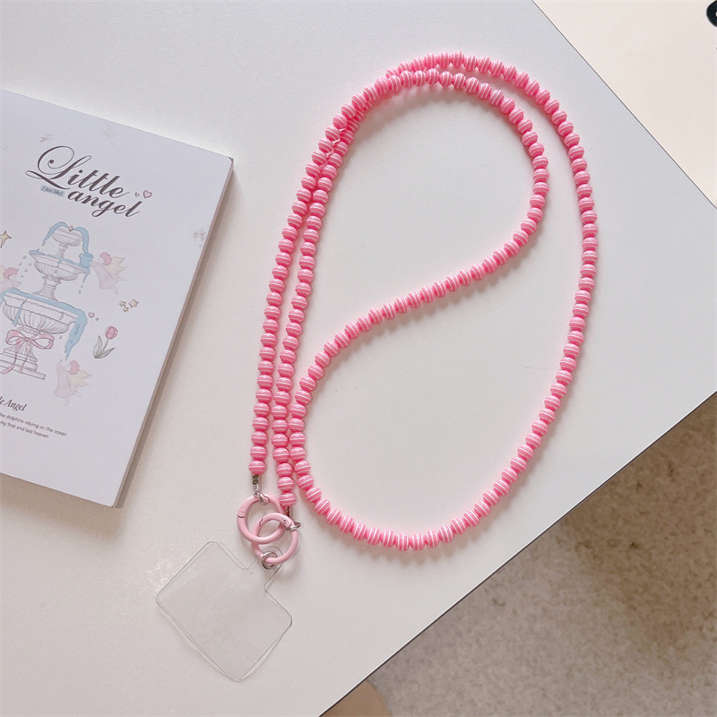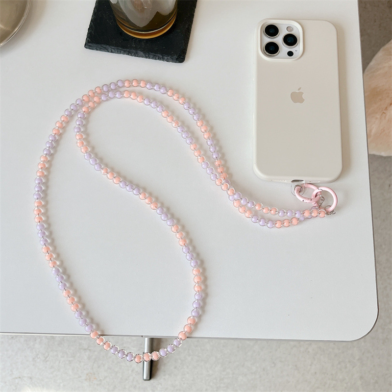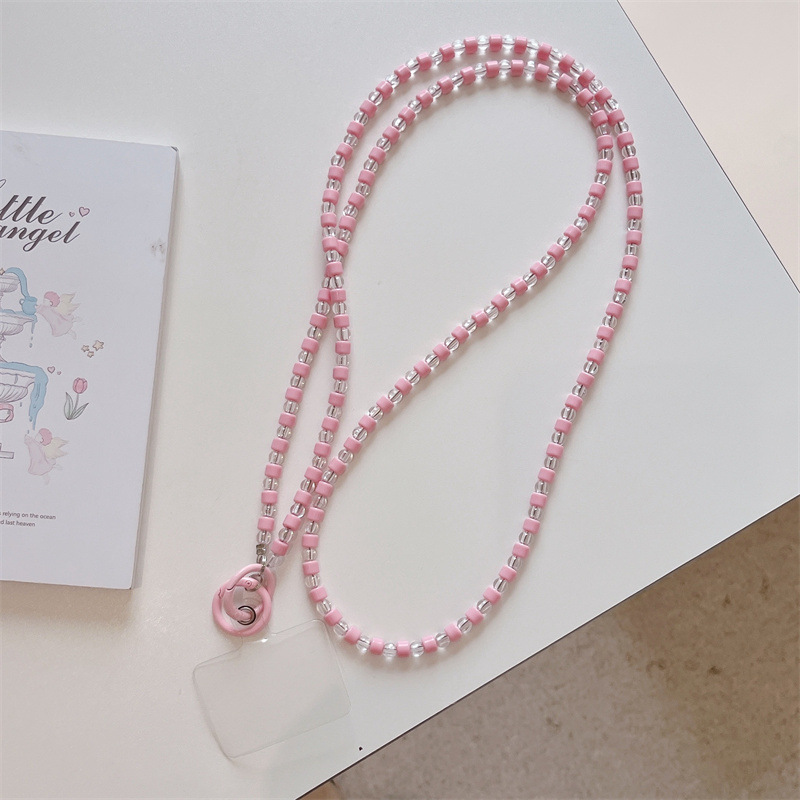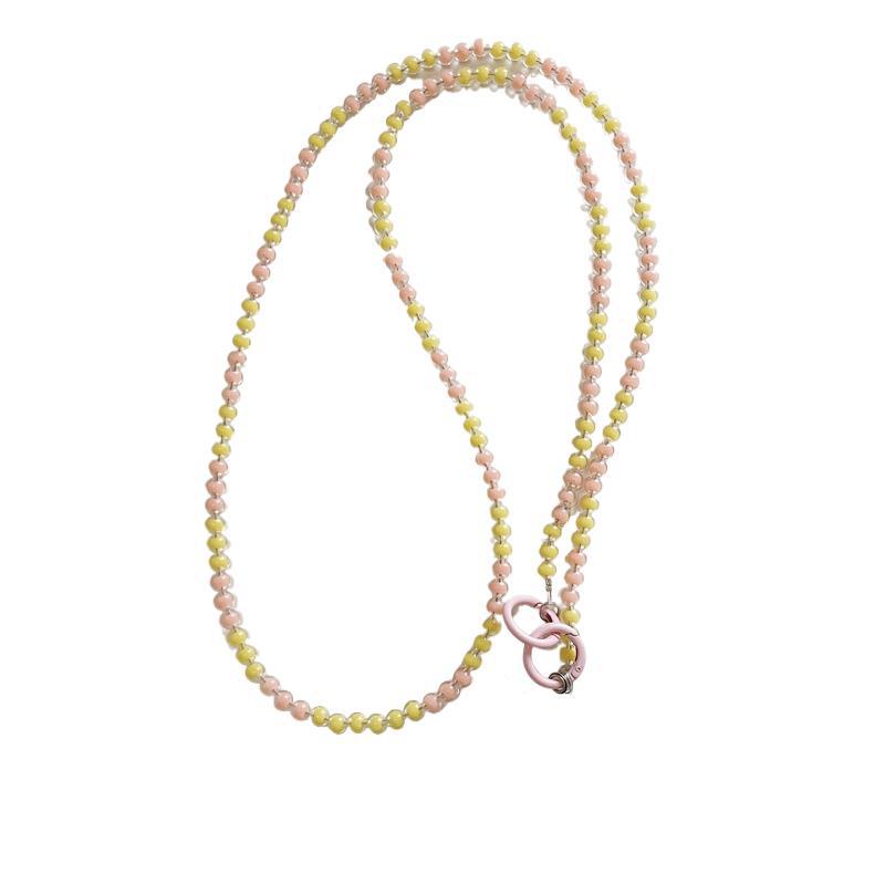 k1173 crossbody long chain pink beads + lvzhu