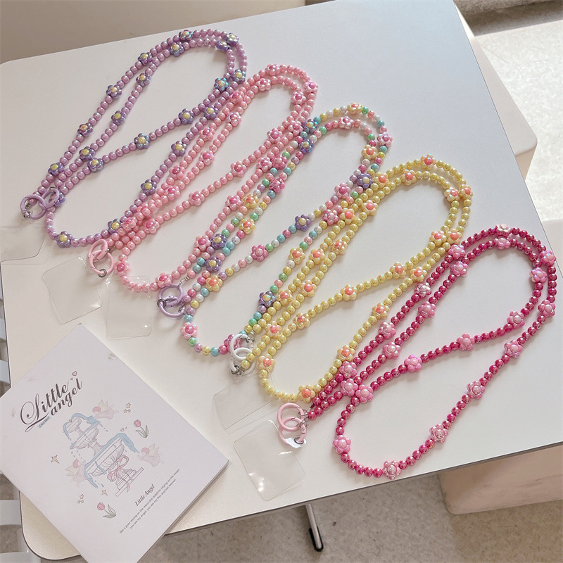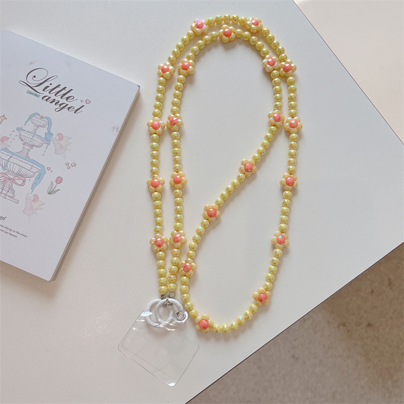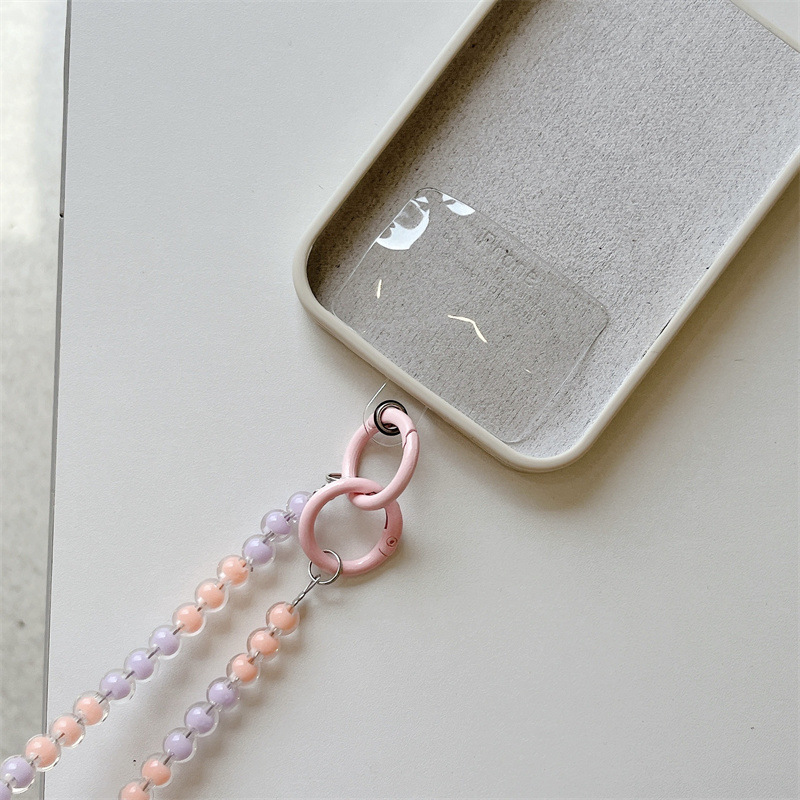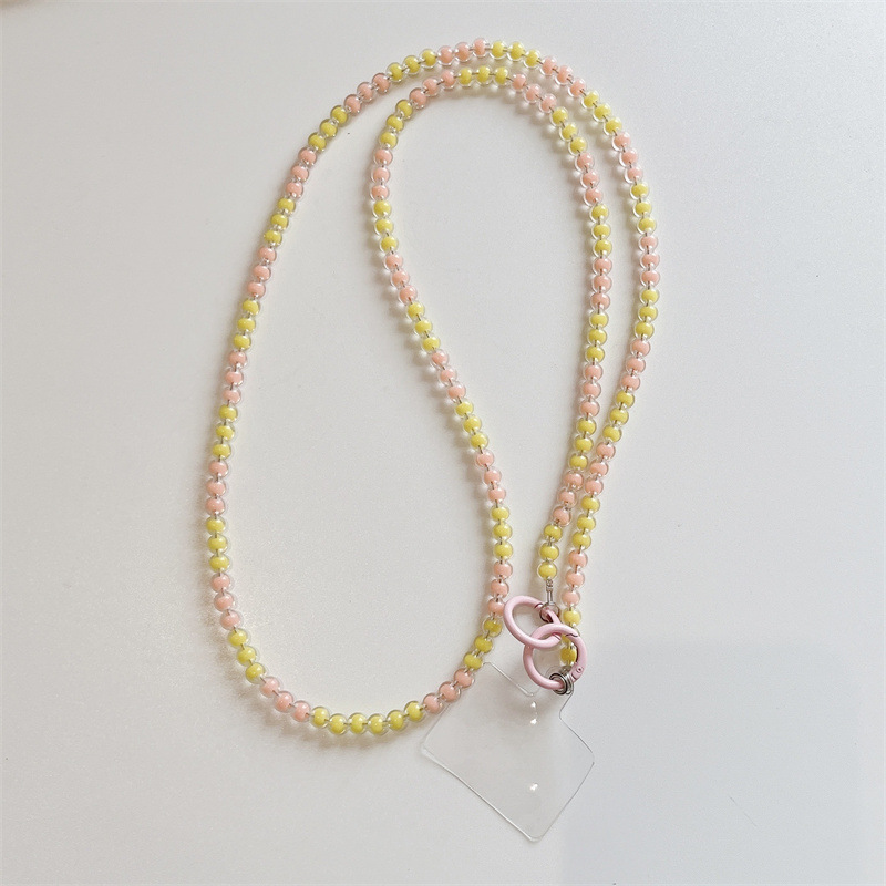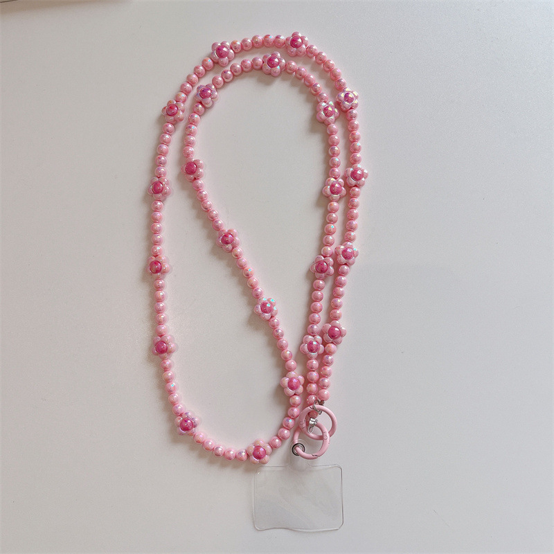 k1173 crossbody long chain pink beads + lvzhu