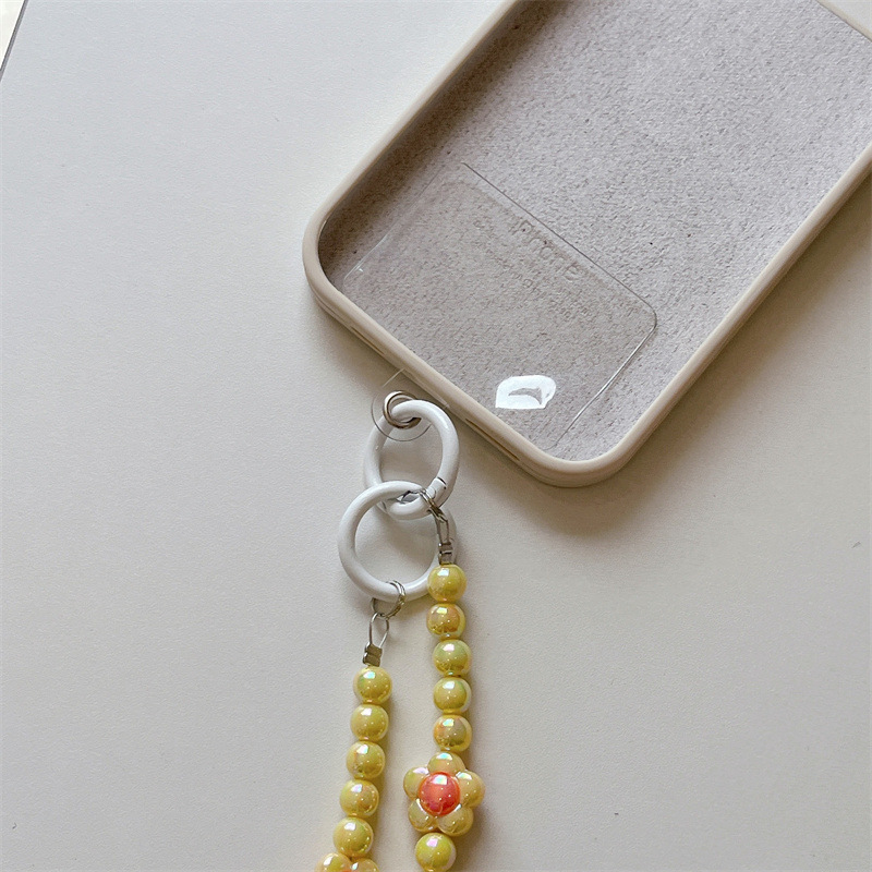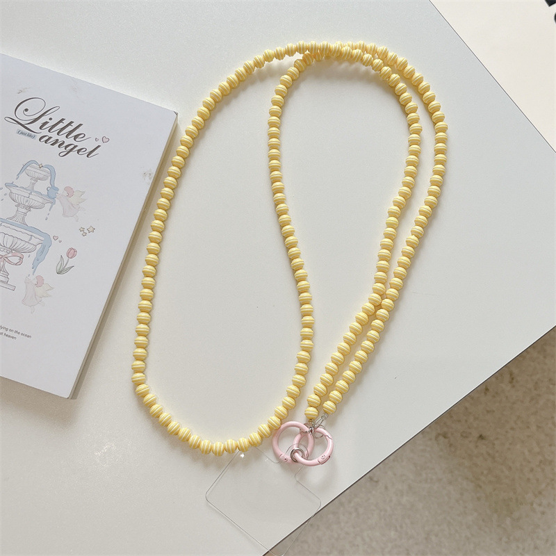 k1174 crossbody long chain yellow beads + orange beads