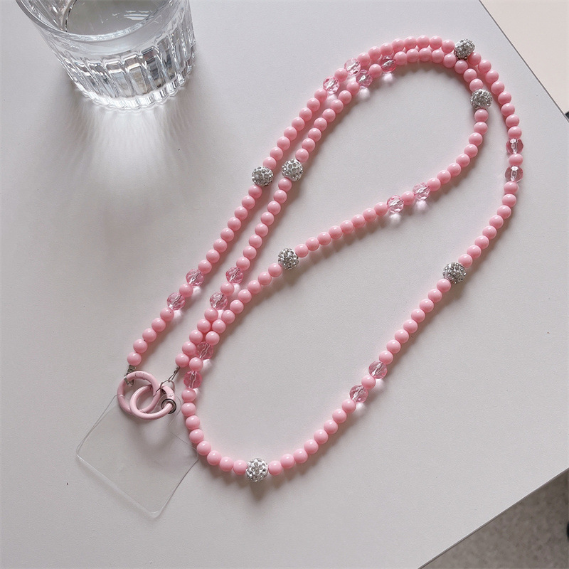 k1251 light pink + diamond beads crossbody long chain