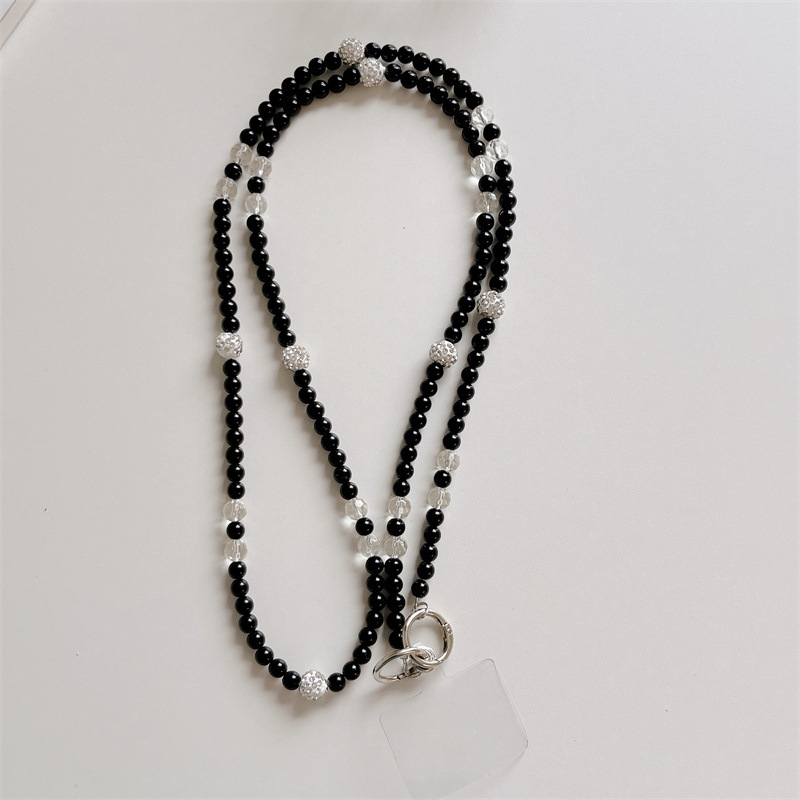 k1252 black + diamond beads crossbody long chain