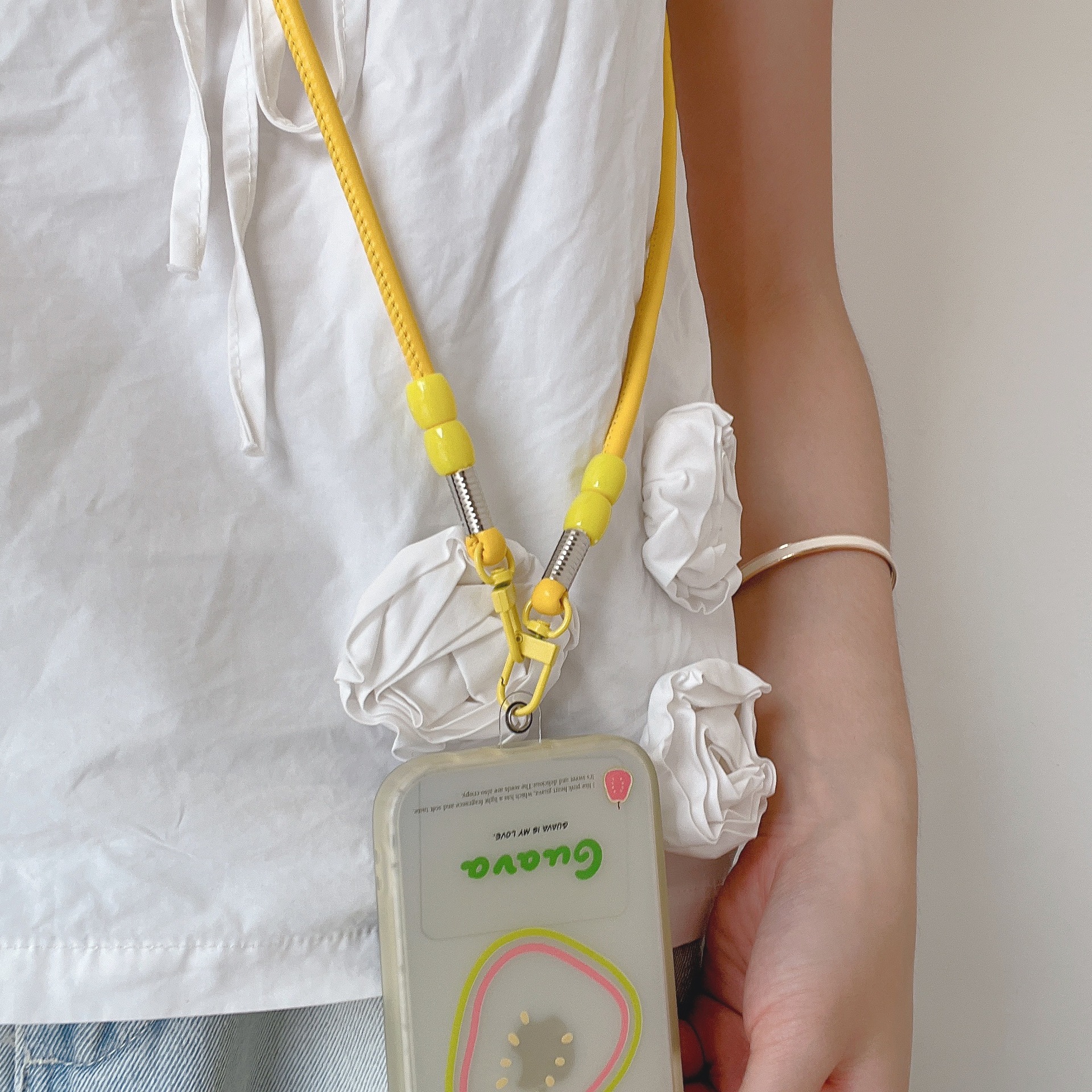 k1358 bracelet long crossbody yellow beads +2 small yellow bears
