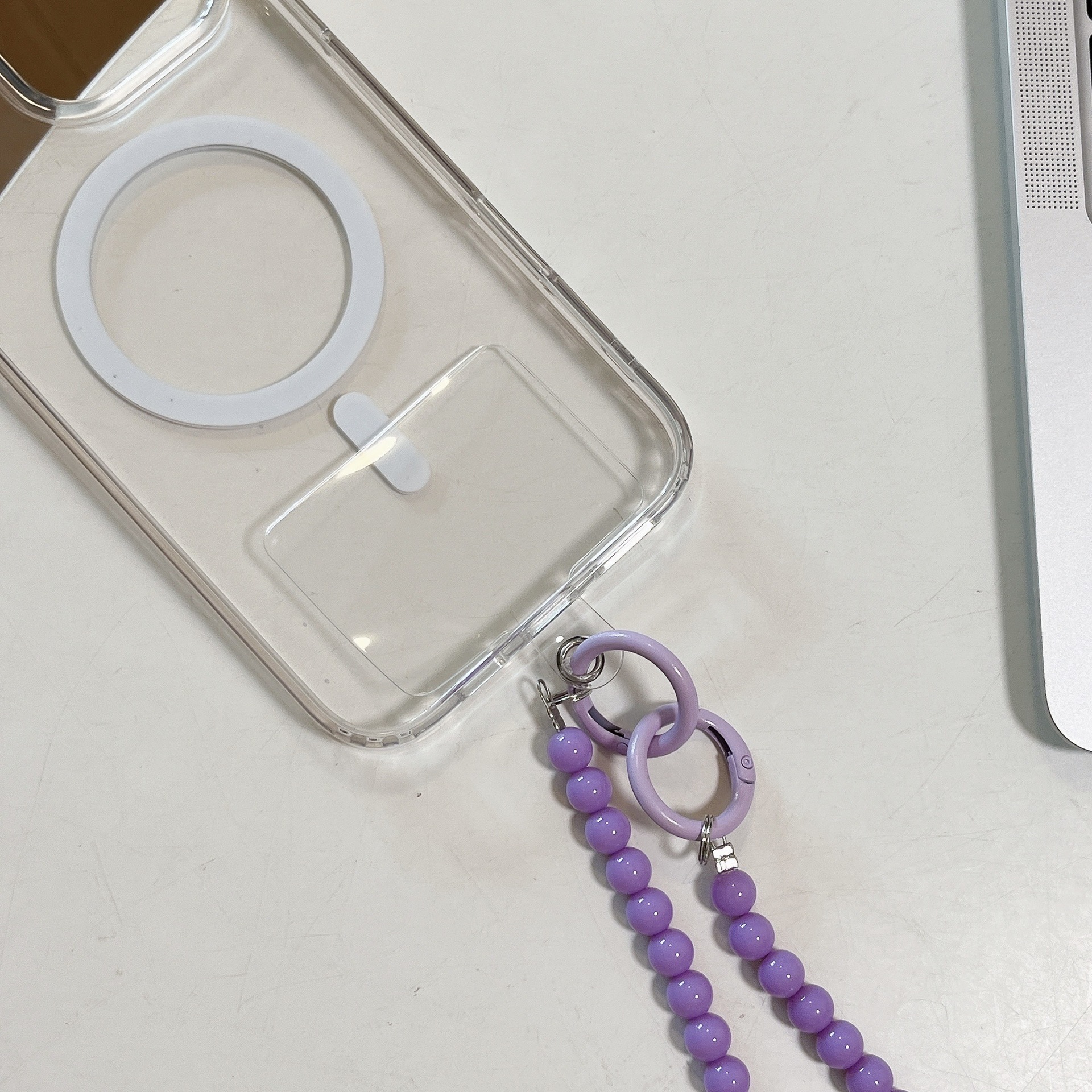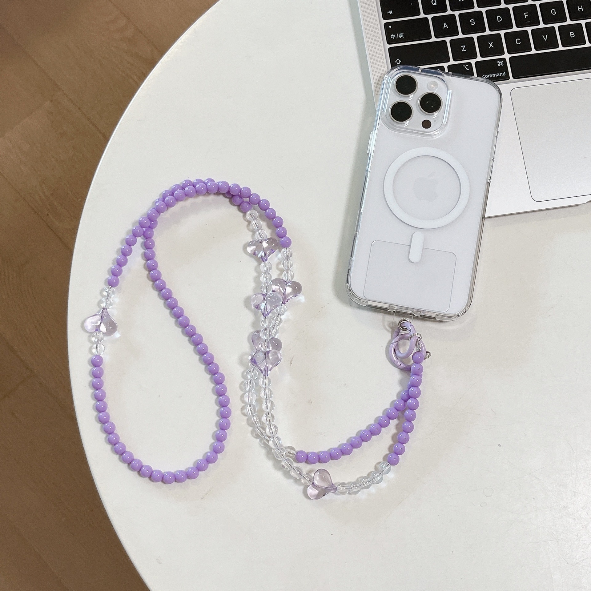 k932 long chain purple beads +6 transparent purple hearts
