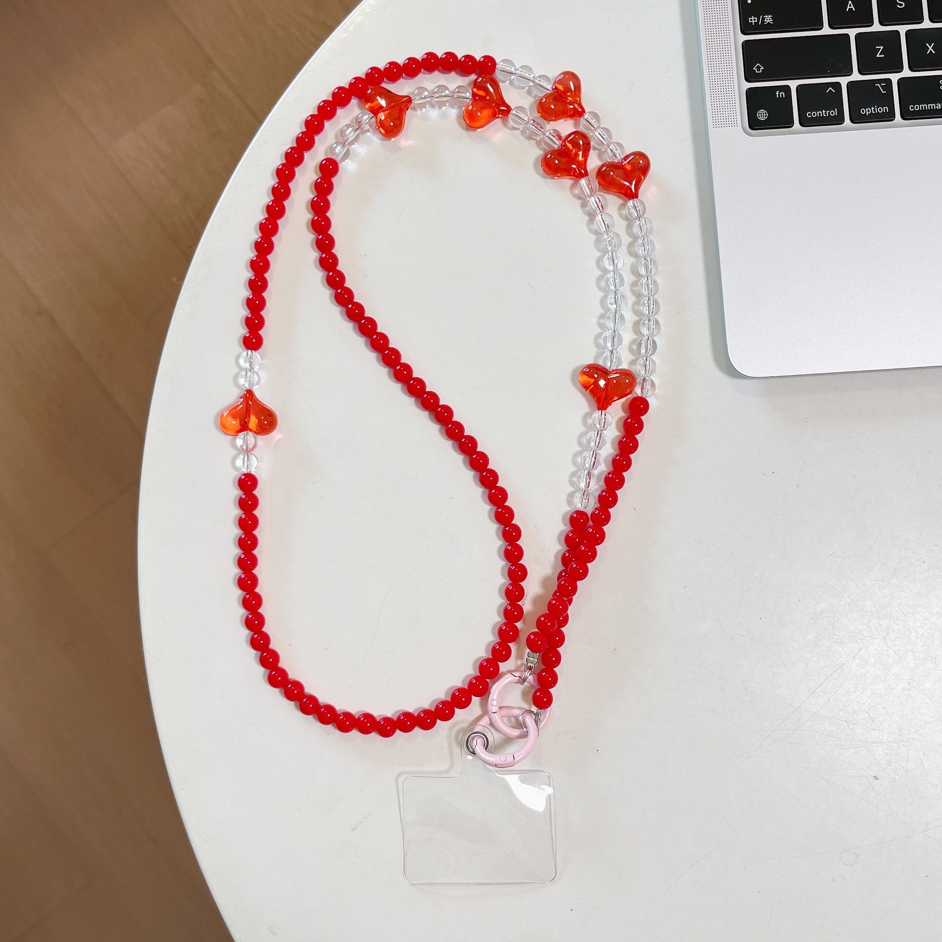 k935 long chain pink beads +6 transparent pink heart
