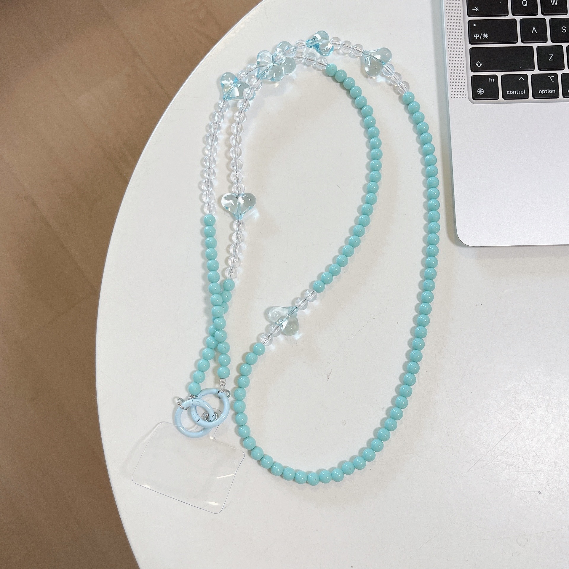 k933 long chain blue beads +6 transparent blue heart