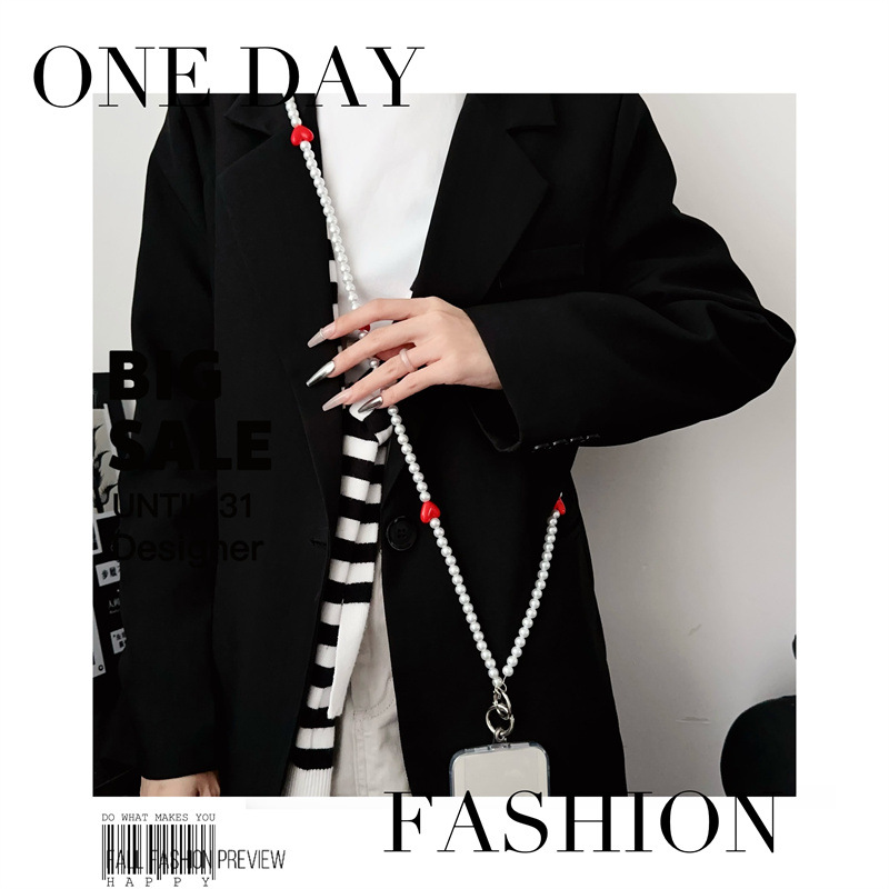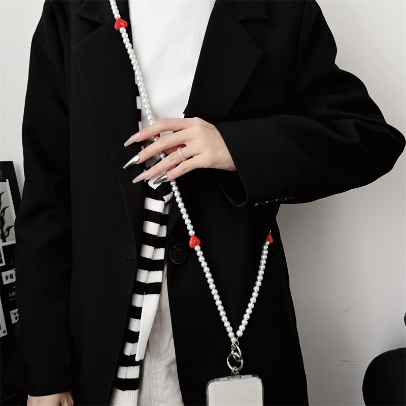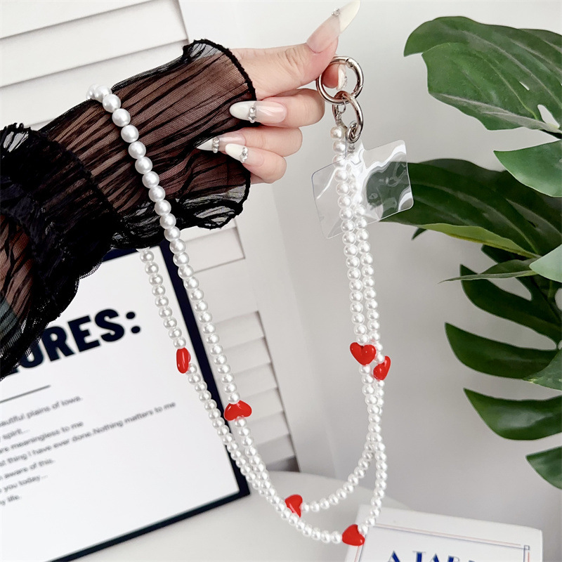 k192 bracelet long pearl pure white + four red heart
