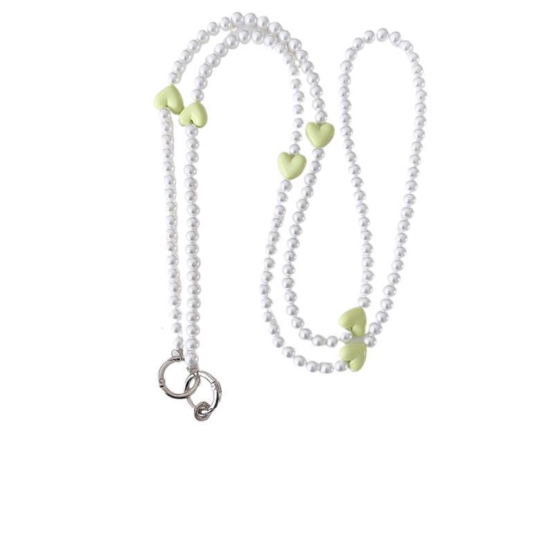 k189 bracelet long pearl pure white + four green heart
