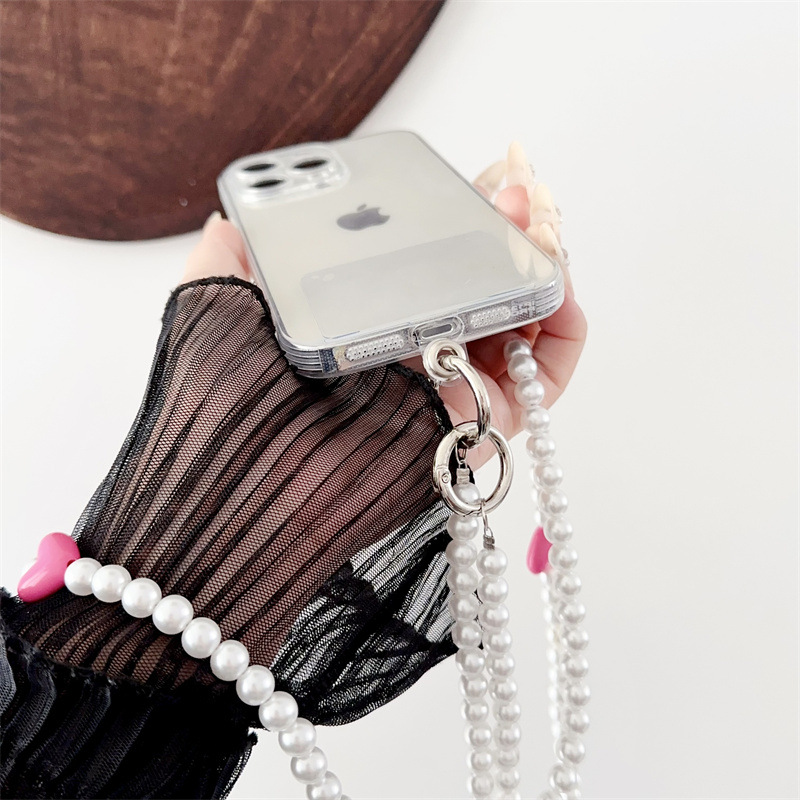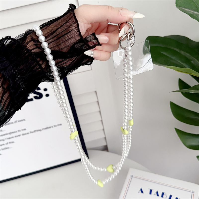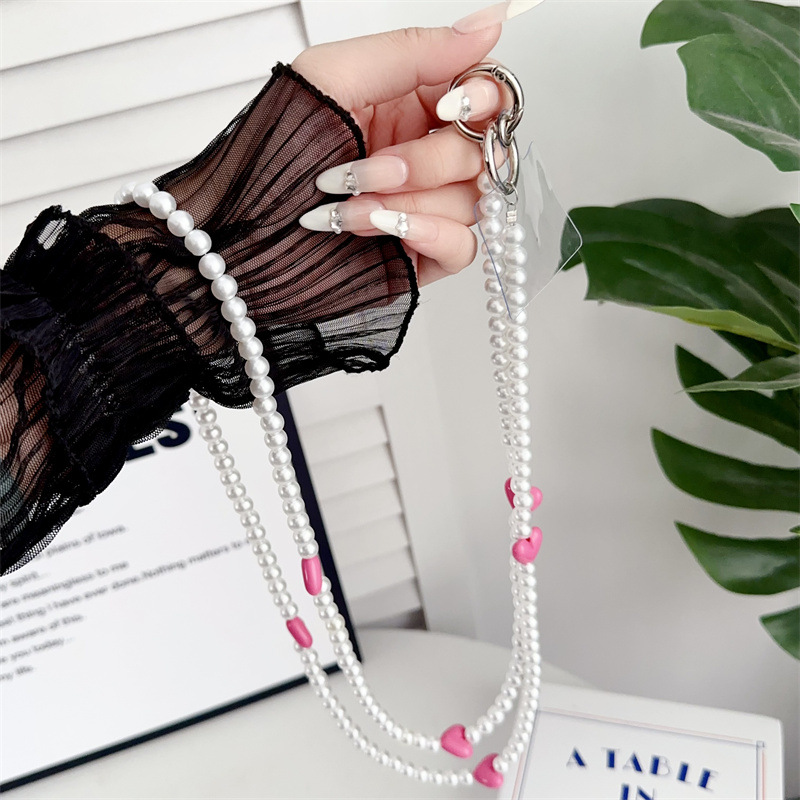 k188 bracelet long pearl pure white + four pink heart