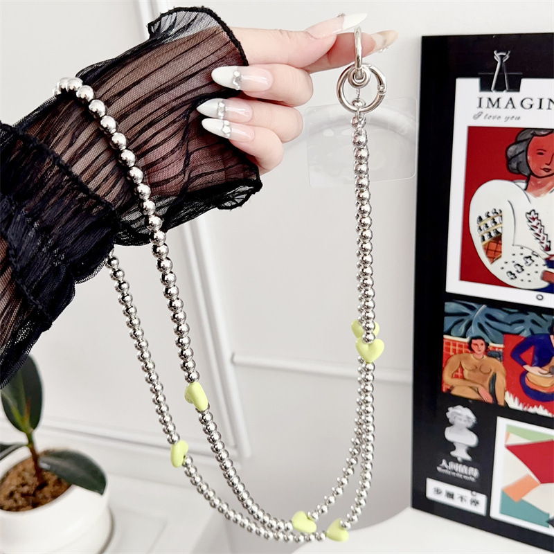 k204 bracelet long plated beads + six light green love heart