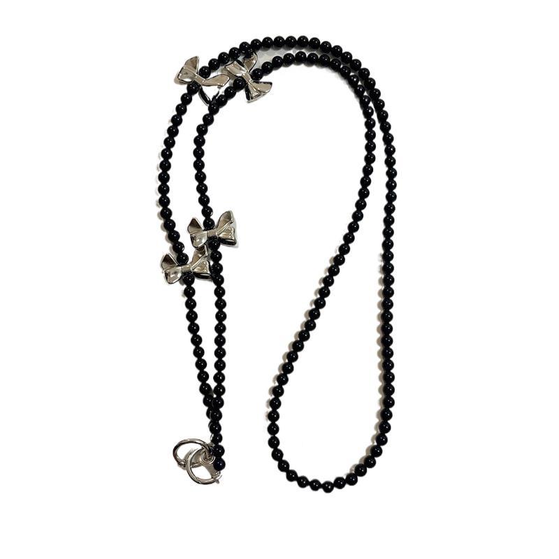 k146 bracelet black beads +4 beige bows