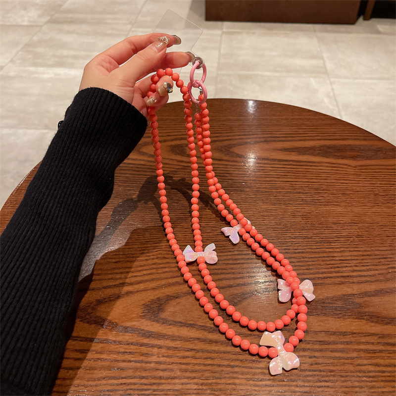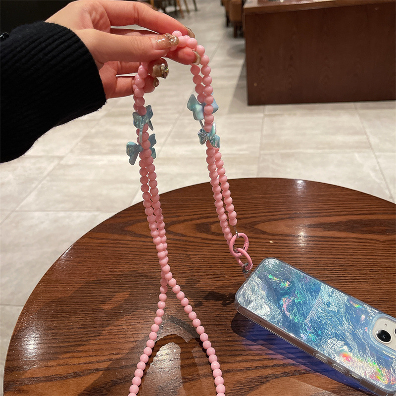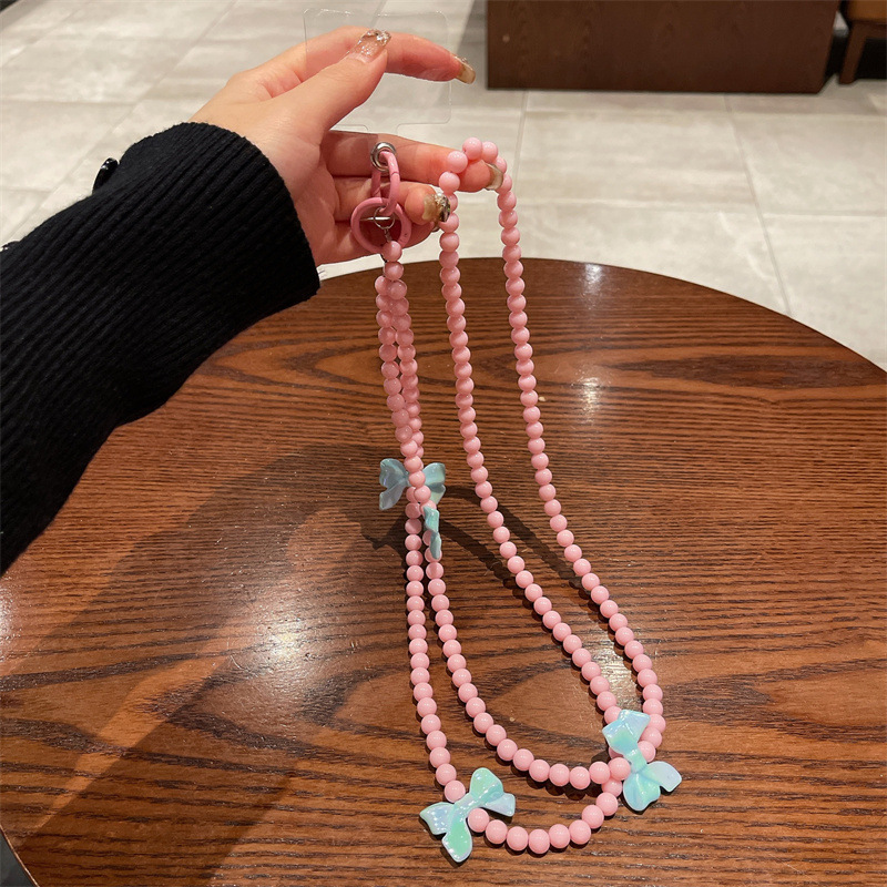k144 bracelet pink beads +4 blue bow-knot