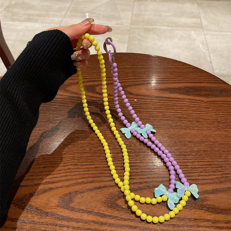 k130 bracelet yellow purple beads +4 blue bow-knot