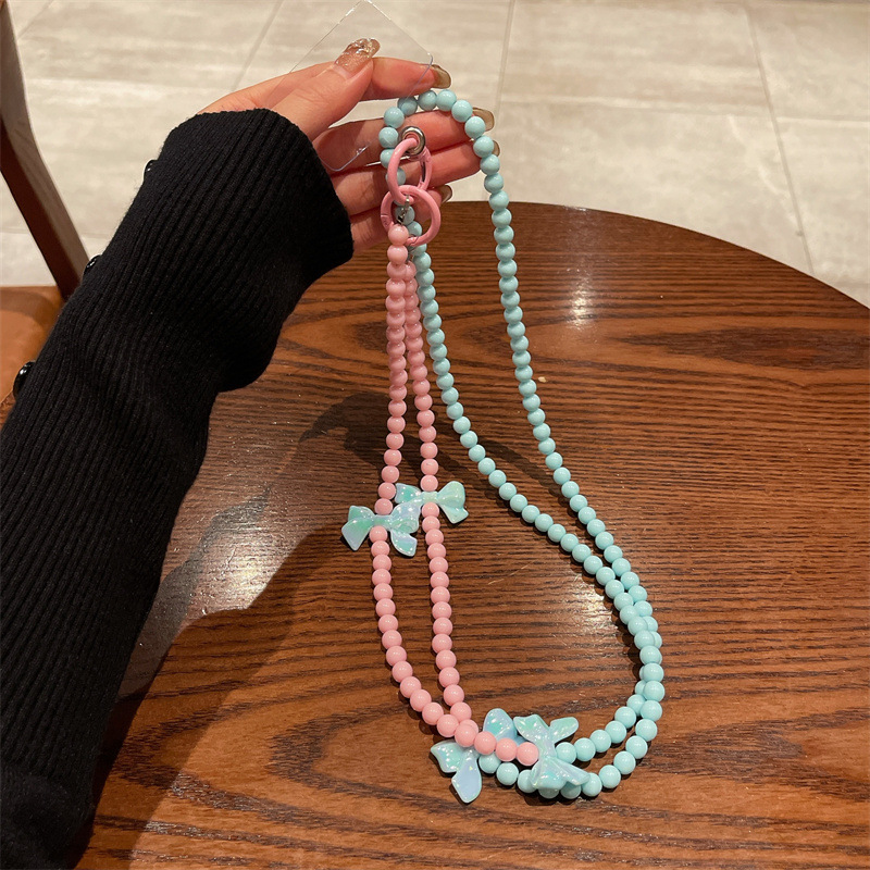k132 bracelet blue pink beads +4 blue bow-knot