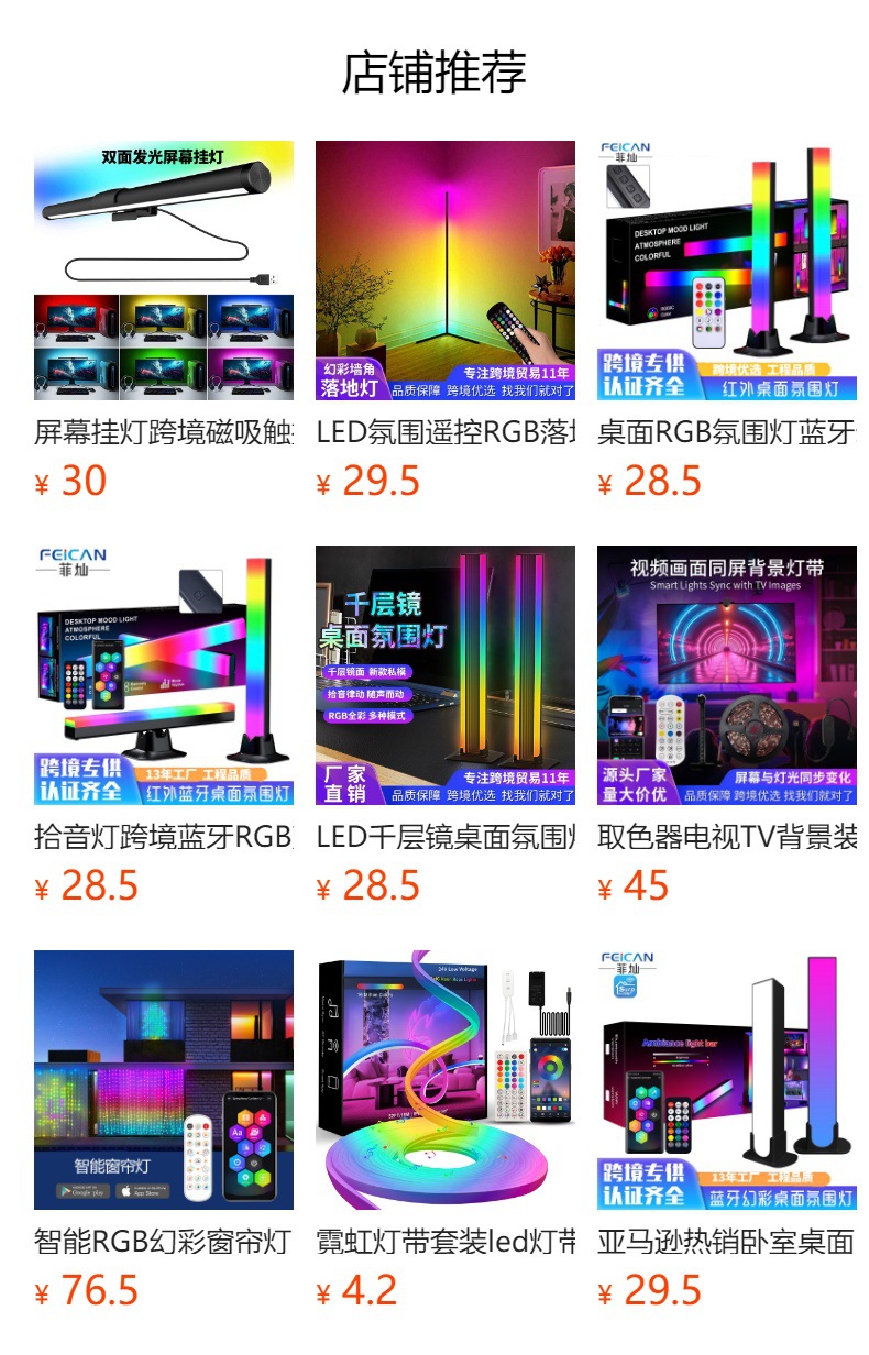Dual-sided light emitting product size: 44cm*5cm; Three-color temperature product size: 30cm*2cm
