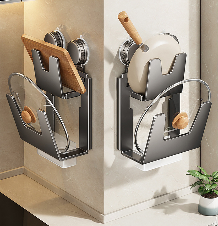 gun gray sucker double-layer pot cover rack