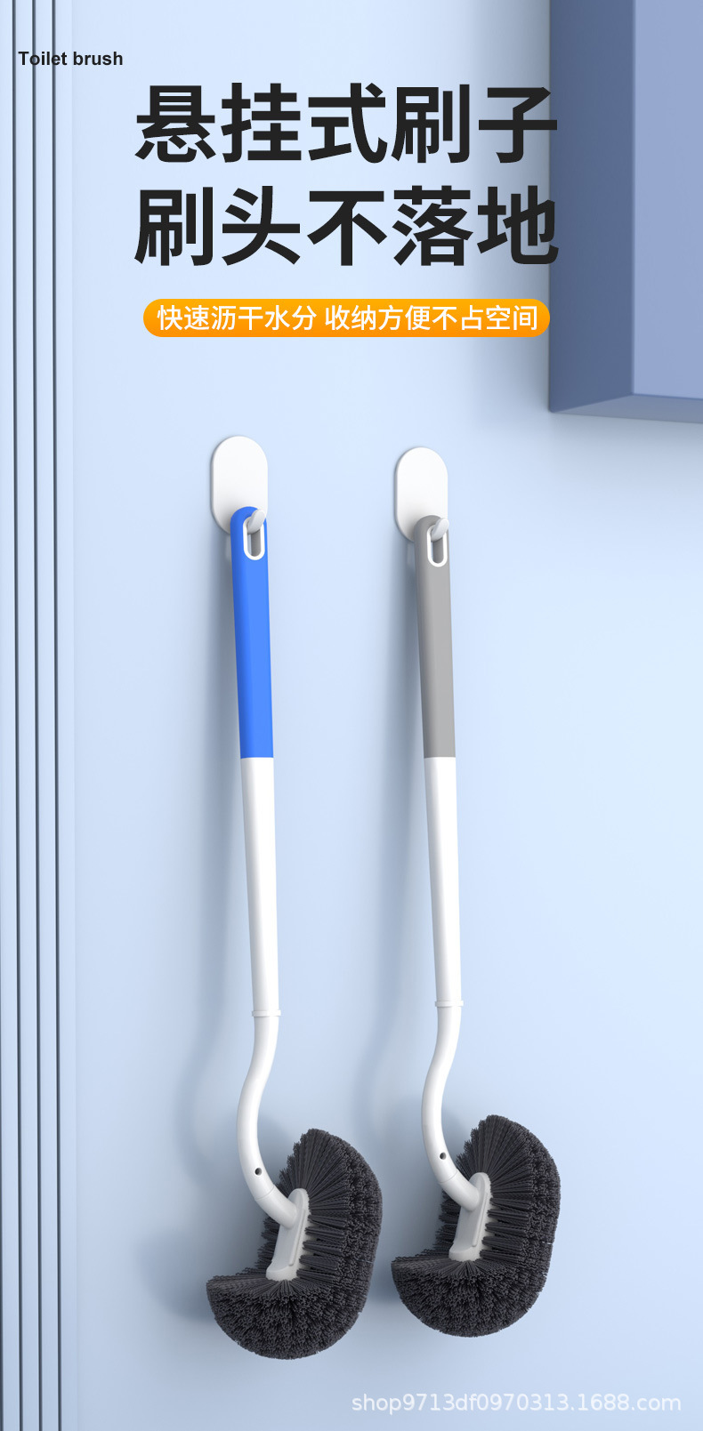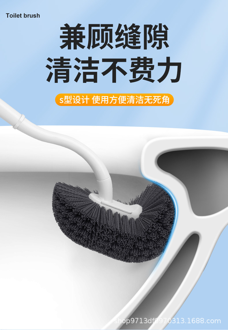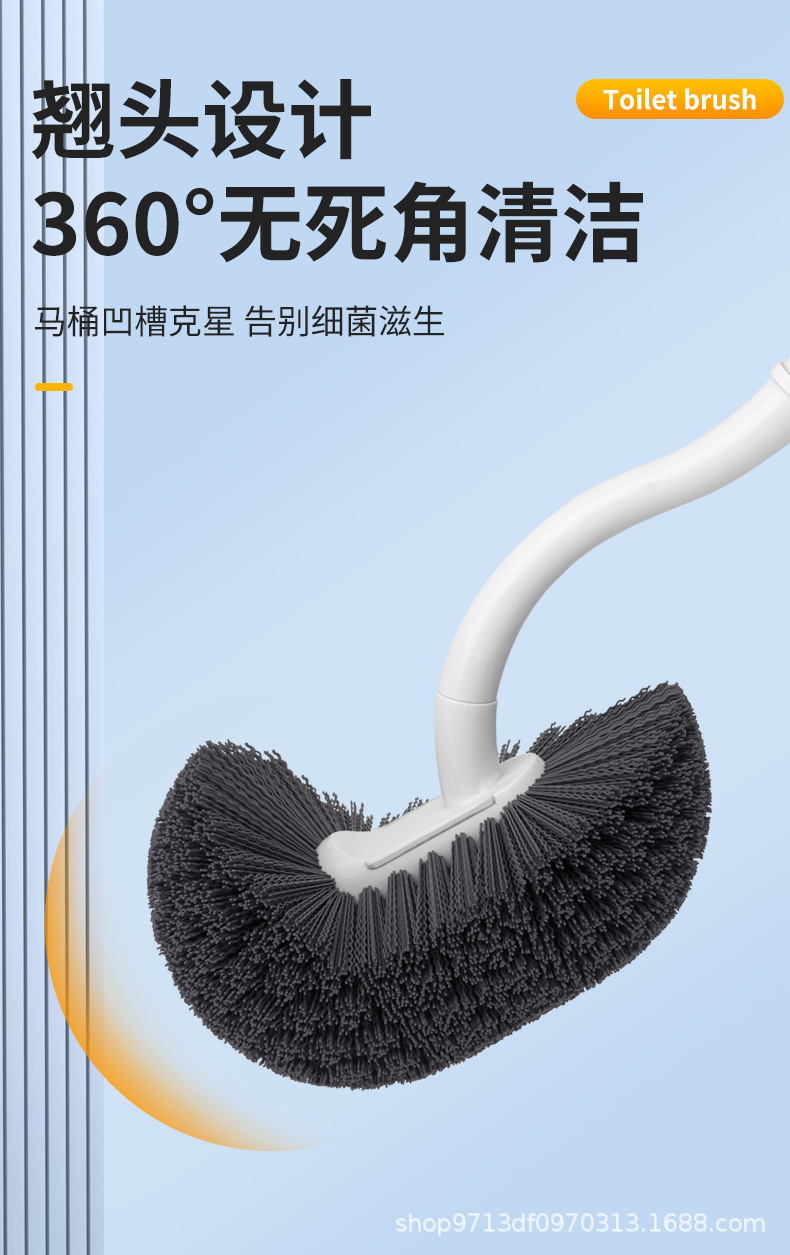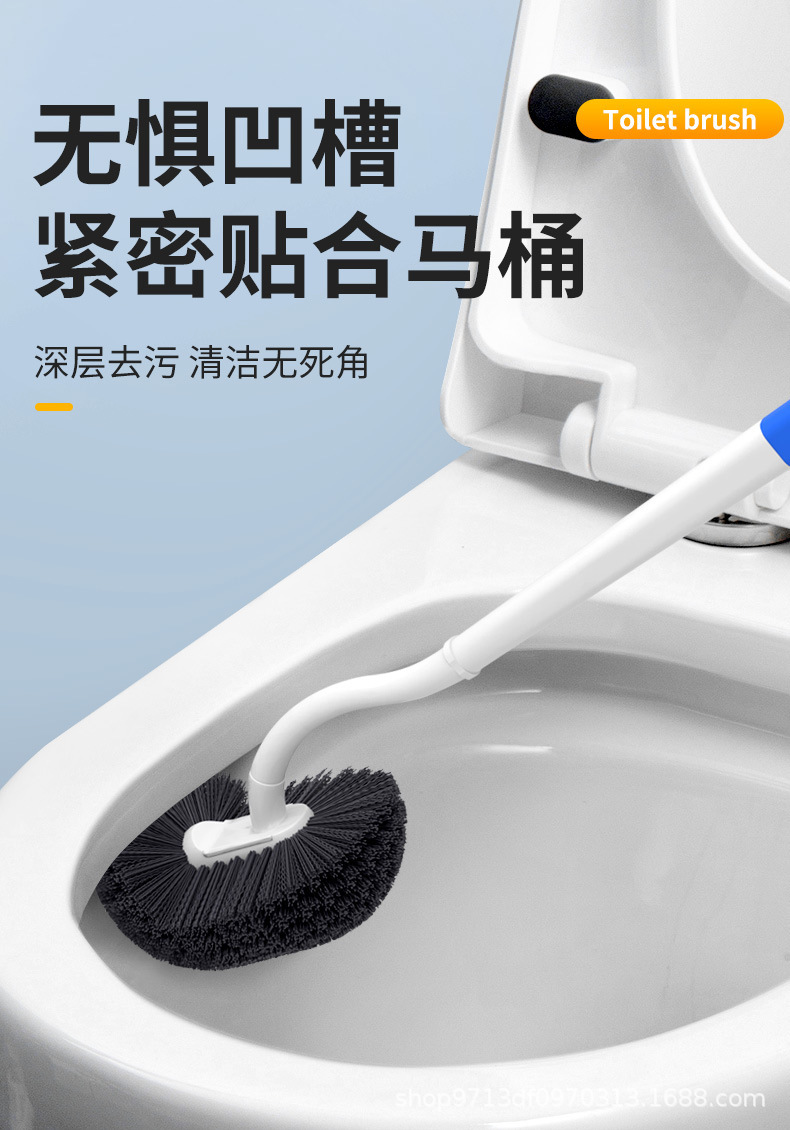 new upgrade long handle dead-zone free toilet brush-blue and white (free hook)